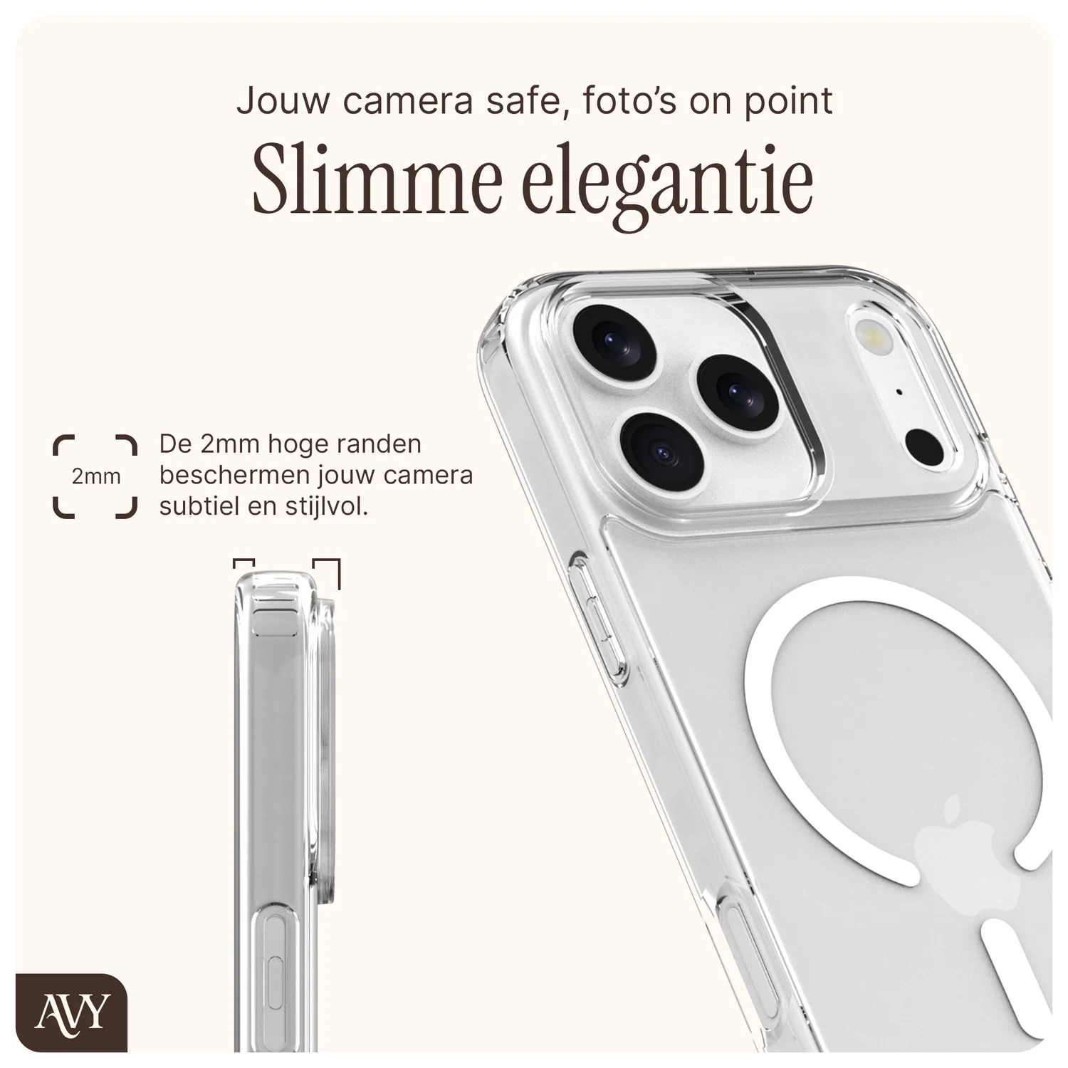 Προστατέψτε τo αγαπημένο σας iPhone 17 Pro Max και διατηρήστε το στην αρχική του κατάσταση, με την κομψή διάφανη θήκη της AVY! Κατασκευασμένη από PC στην πλάτη και TPU περιμετρικά της οθόνης, για προστασία από χτυπήματα και γρατζουνιές. Διαθέτει μαγνητικό δακτύλιο, συμβατό με αξεσουάρ MagSafe και Qi2, όπως φορτιστή, βάσεις γραφείου, αυτοκινήτου και finger holder.