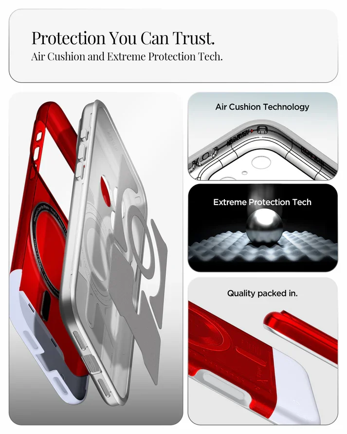 Εκτός από τη μοναδική της εμφάνιση, η θήκη αποτελεί μια εξαιρετική προστατευτική επιλογή επειδή είναι κατασκευασμένη τόσο από TPU, με την τεχνολογία Air Cusion, που απορροφά τους κραδασμούς όσο και από πολυανθρακικό PC που ενισχύει την κατασκευή. Επίσης, διαθέτει αυξημένο χείλος περιμετρικά της οθόνης και της κάμερας έτσι ώστε να προστατευτεί το κινητό σας.