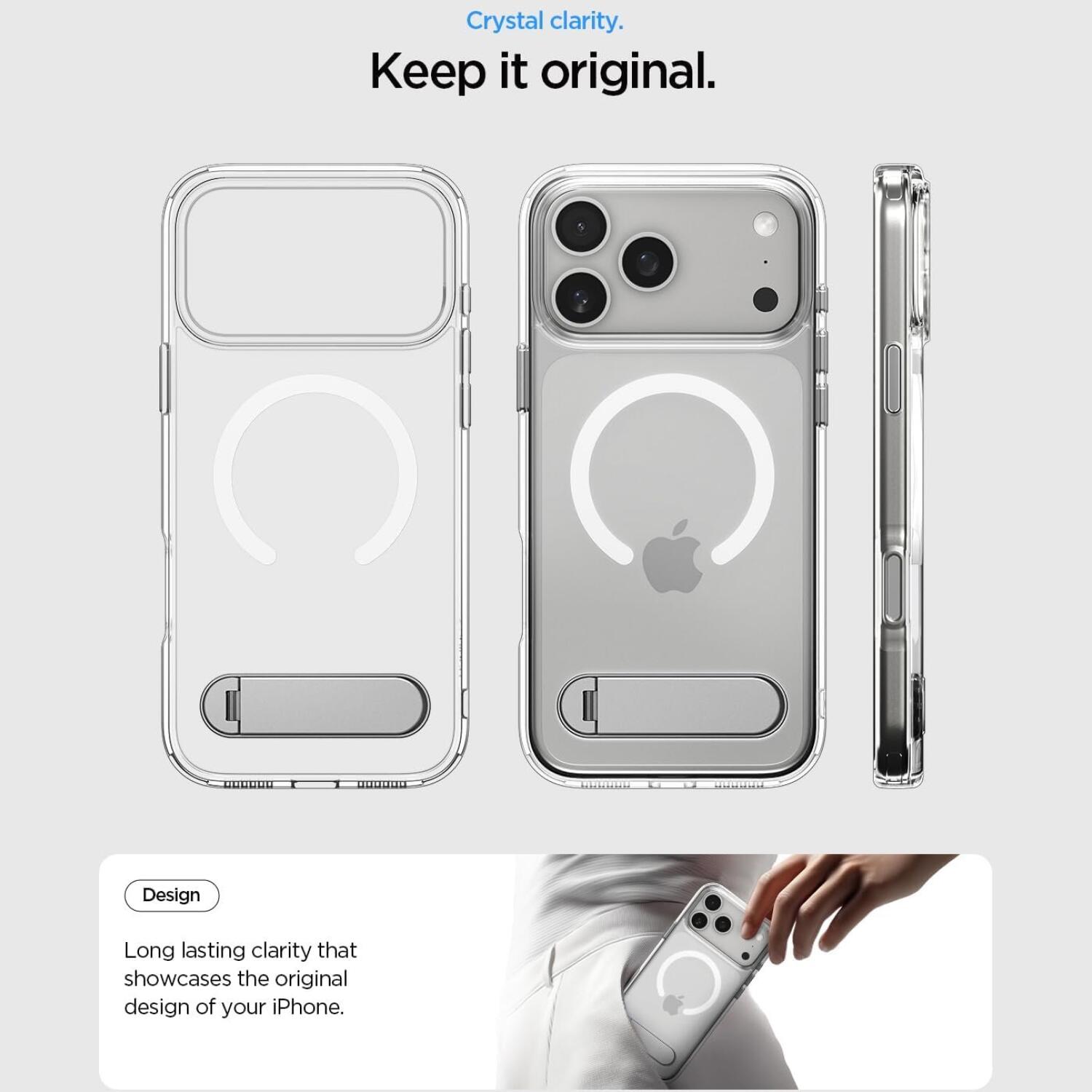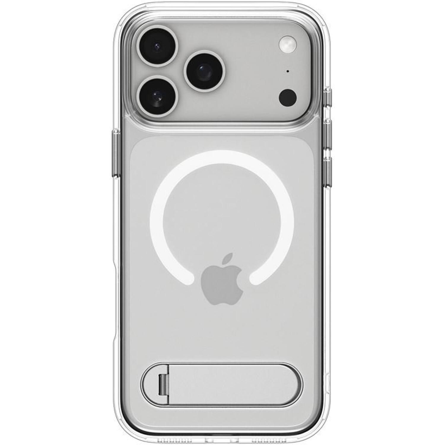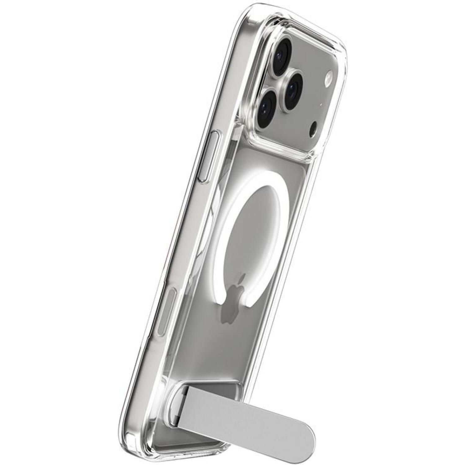 Στο πίσω μέρος ακόμα, διαθέτει ειδικό stand για να μπορείτε να τοποθετείτε το κινητό σας οριζόντια, ώστε να βλέπετε σειρές ταινίες ή ότι άλλο επιθυμείτε. Έχει αυξημένο χείλος περιμετρικά έτσι ώστε να προστατευτεί το κινητό σας σε μία πτώση με την μπροστινή όψη στο έδαφος. Διαθέτει μαγνητικό δακτύλιο, συμβατό με τον ασύρματο φορτιστή MagSafe, για γρήγορη και εύκολη φόρτιση.