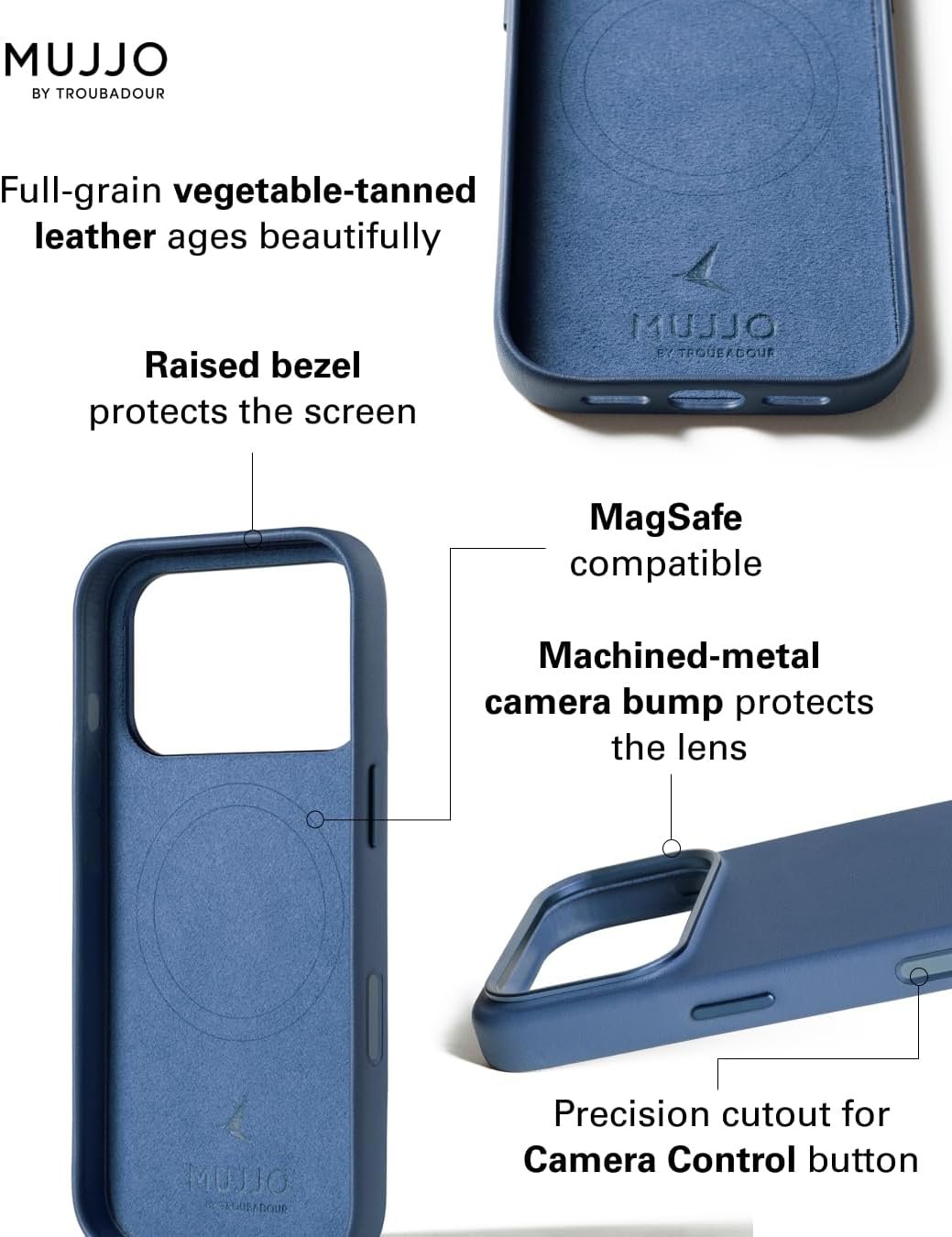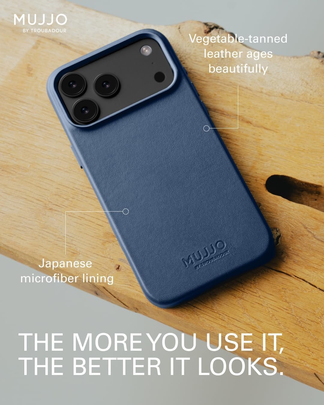 Σημείωση: Επειδή το δέρμα είναι γνήσιο, καμία θήκη της MUJJO by Troubadour δεν είναι εντελώς όμοια με την άλλη. Είναι πιθανό να παρατηρήσετε μικρές διαφοροποιήσεις στην υφή των κόκκων ή στις φυσικές γραμμές στην επιφάνειά.