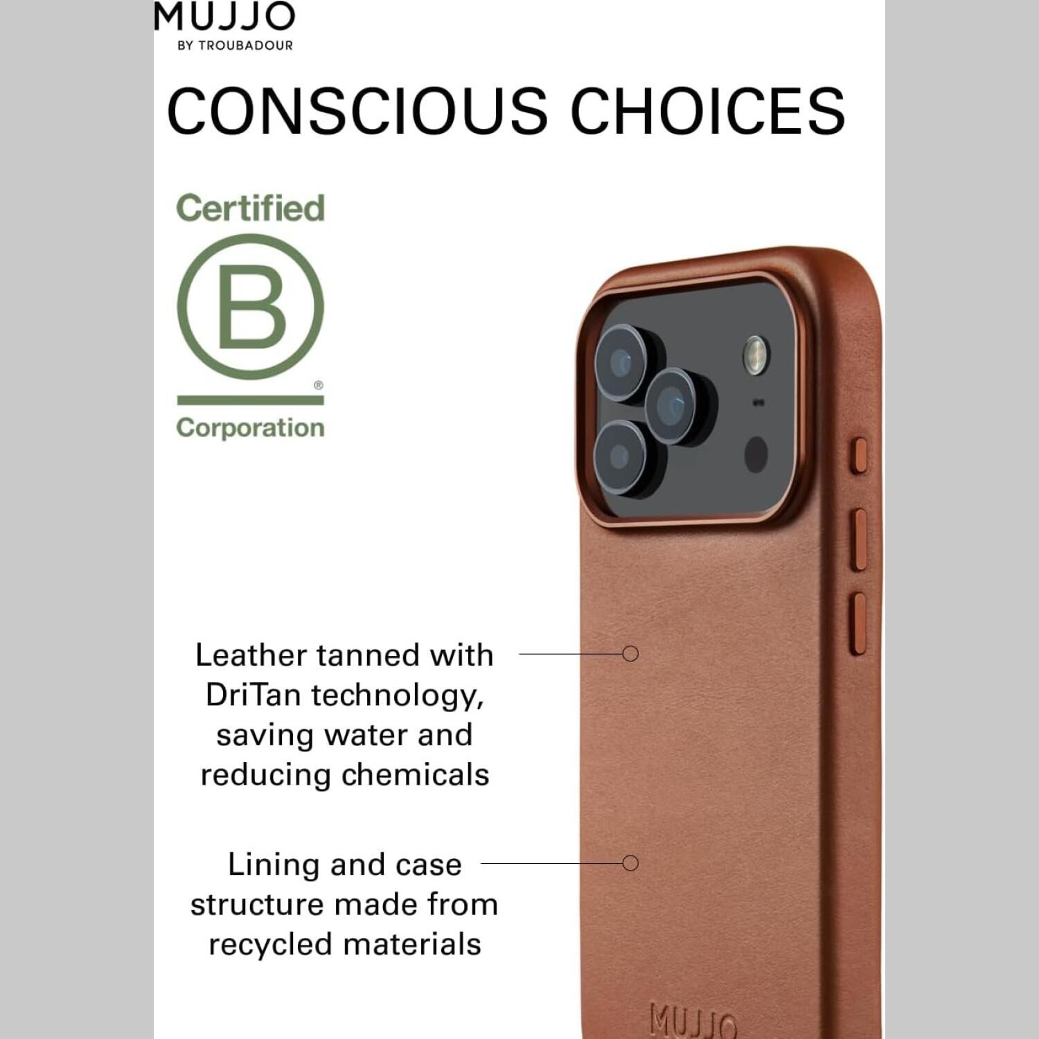 Σημείωση: Επειδή το δέρμα είναι γνήσιο, καμία θήκη της MUJJO by Troubadour δεν είναι εντελώς όμοια με την άλλη. Είναι πιθανό να παρατηρήσετε μικρές διαφοροποιήσεις στην υφή των κόκκων ή στις φυσικές γραμμές στην επιφάνειά.