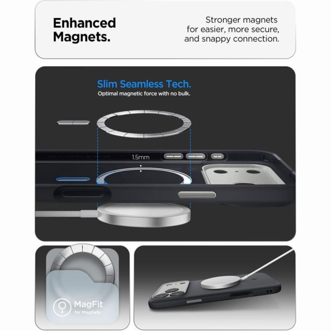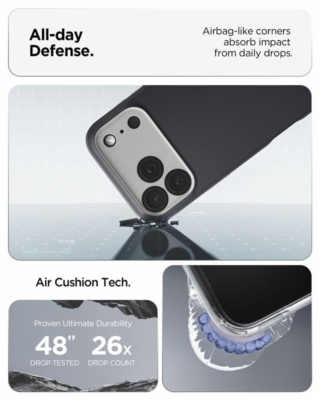 Διαθέτει μαγνητικό δακτύλιο, συμβατό με αξεσουάρ MagSafe, όπως τον φορτιστή, βάσεις γραφείου, αυτοκινήτου και finger holder. Είναι κατασκευασμένη από ελαστικό στρώμα θερμοπλαστικής πολυουρεθάνης TPU εξωτερικά και PC εσωτερικά, ώστε να προστατεύει τη συσκευή σας από κραδασμούς, δακτυλικά αποτυπώματα και χτυπήματα ή γρατσουνιές που μπορεί να προκληθούν κατά την καθημερινή χρήση. Ακόμη, πληροί τις στρατιωτικές προδιαγραφές MIL STD 810G-516.6, έχοντας περάσει μια σειρά απαιτητικών δοκιμασιών σχετικά με την αντοχή της.