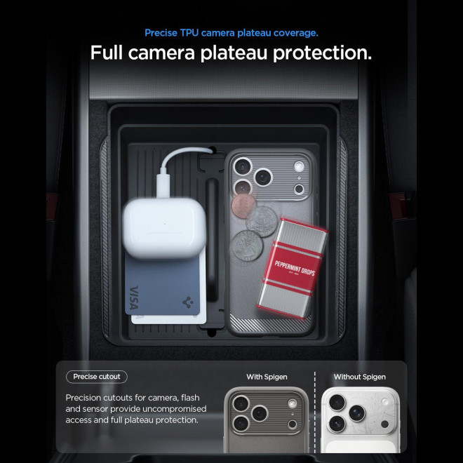 Επιπλέον, η θήκη είναι σχεδιασμένη με ένα προστατευτικό κάλυμμα, το οποίο είναι απόλυτα συμβατό με το Camera Control, προσφέροντας βελτιωμένη εμπειρία χρήσης, είναι ευαίσθητο στην αφή και εξασφαλίζει την απρόσκοπτη λειτουργία του κουμπιού λήψης.