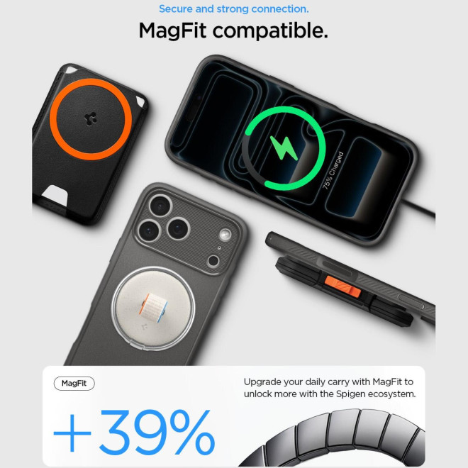 Η θήκη Rugged Armor MagFit της Spigen είναι κατασκευασμένη για να εφαρμόζει τέλεια στο iPhone 17 Pro και να το προστατεύει από την καθημερινή χρήση, αποτελεσματικά, χωρίς να προσθέτει επιπλέον όγκο στη συσκευή σας. Διαθέτει μαγνητικό δακτύλιο, συμβατό με τον ασύρματο φορτιστή MagSafe, για γρήγορη και εύκολη φόρτιση.