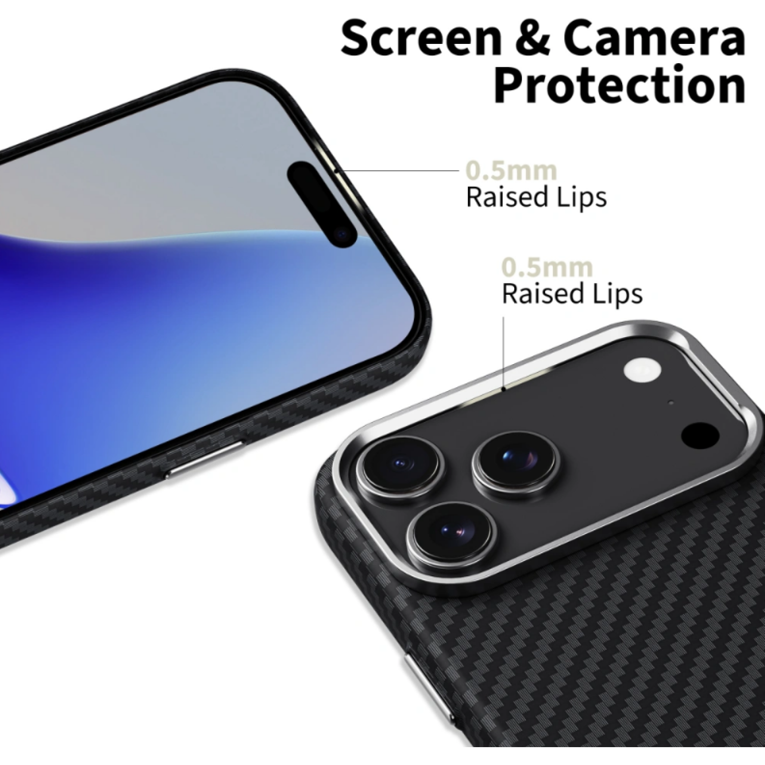 Διαθέτει αυξημένο χείλος περιμετρικά της κάμερας, το οποίο έχει έναν κομψό σχεδιασμό και προστατεύει από γρατσουνιές την συσκευή σας όταν βρίσκεται σε επίπεδη επιφάνεια, ενώ τα κουμπιά έχουν το ίδιο χρώμα με το πλαίσιο της κάμερας, ενισχύοντας την αισθητική της θήκης.