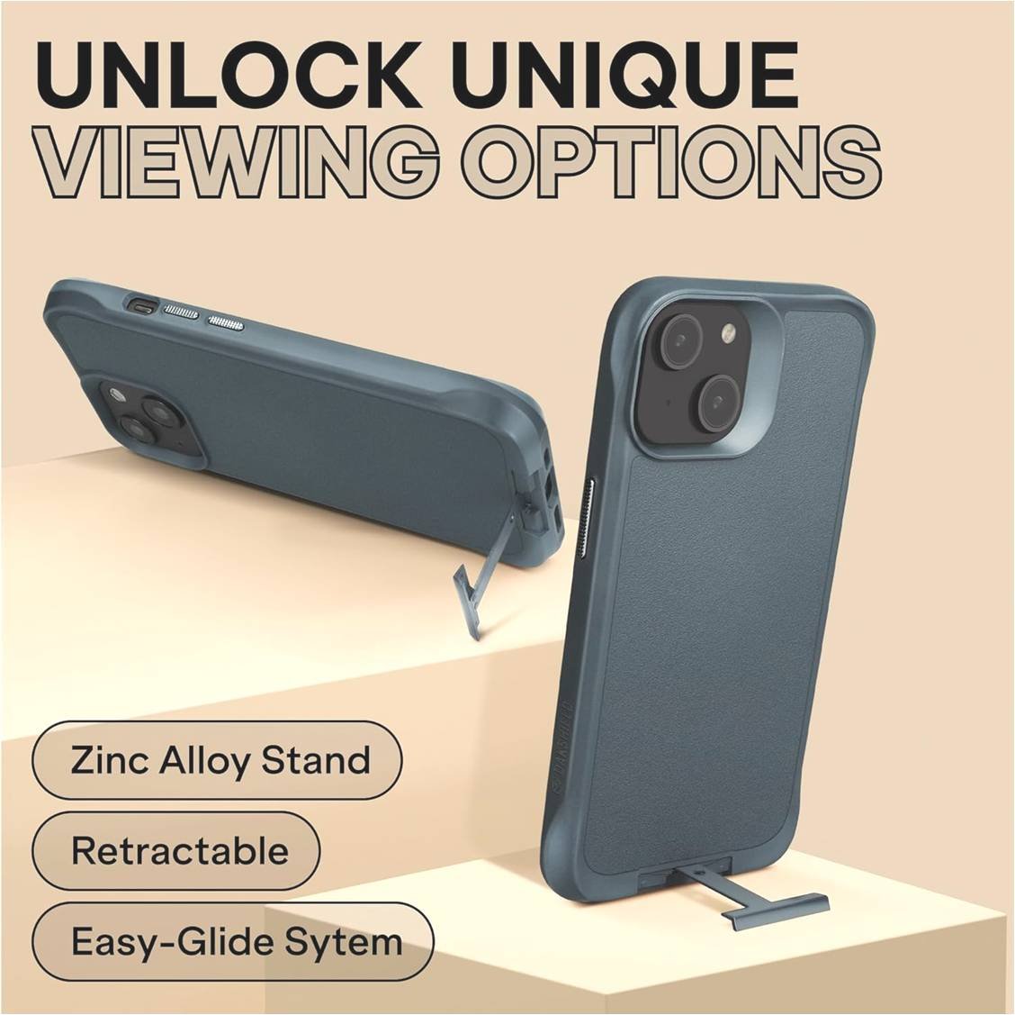 Η μοναδική ενσωματωμένη βάση kickstand από κράμα ψευδάργυρου επιτρέπει την οριζόντια και κάθετη προβολή, καθιστώντας την ιδανική για παρακολούθηση βίντεο, βιντεοκλήσεις ή gaming, ενώ όταν δεν χρησιμοποιείται, αναδιπλώνεται διακριτικά στο πίσω μέρος της θήκης.
