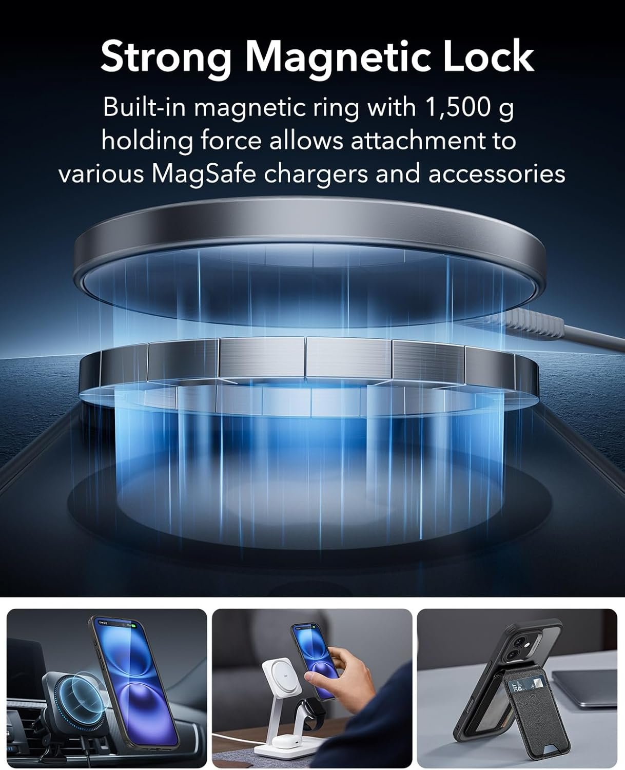 Επιπλέον, διαθέτει ισχυρό ενσωματωμένο μαγνήτη για τον φορτιστή και τα αξεσουάρ MagSafe και παρέχει 1.500g δύναμη συγκράτησης, για μία ασφαλή εμπειρία χρήσης. Στο σετ περιλαμβάνεται και ένα αντιχαρακτικό tempered glass με πλαίσιο τοποθέτησης, το οποίο είναι κατασκευασμένο από ενισχυμένο πραγματικό γυαλί 9H, με πολύ λεπτή σύνθεση και με πάχος μόλις 0.3mm, έτσι ώστε να μην επηρεάζεται η λειτουργία αφής.