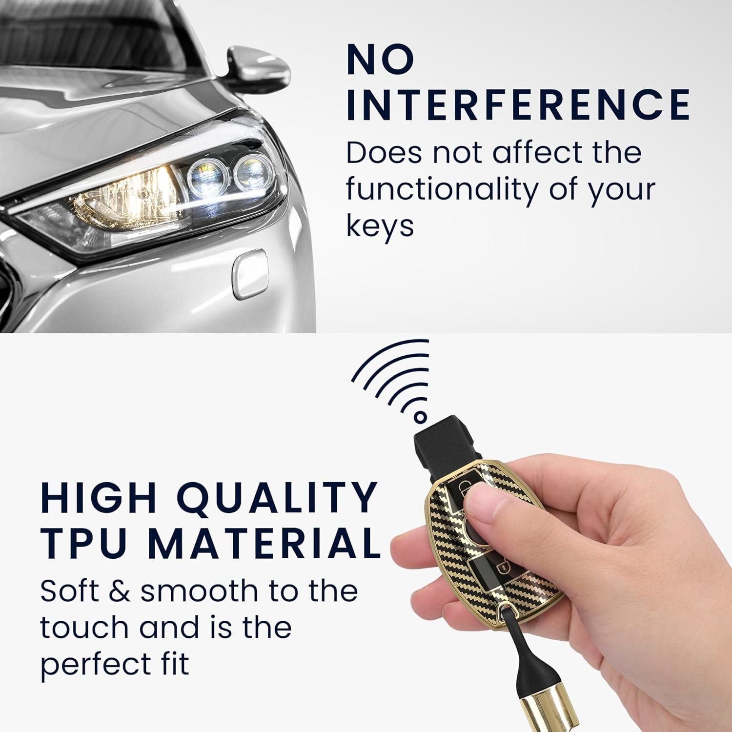 Το υλικό TPU υψηλής ποιότητας και ο κομψός carbon σχεδιασμός, προσφέρει άνετη εφαρμογή και απαλή αίσθηση στην αφή. Είναι ειδικά σχεδιασμένη για να ταιριάζει απόλυτα στο μοντέλο του κλειδιού του αυτοκινήτου σας, αυτή η θήκη τοποθετείται εύκολα χωρίς εργαλεία, προσφέροντας προστασία χωρίς παρεμβολές.