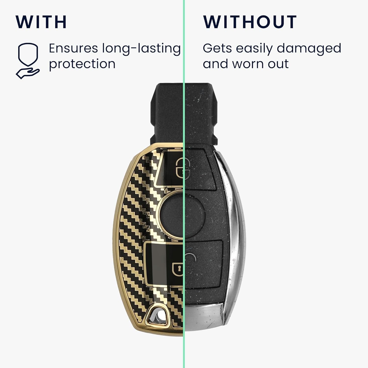 H θήκη κλειδιού αυτοκινήτου της KW είναι ειδικά σχεδιασμένη για την προστασία του κλειδιού του αγαπημένου σας Mercedes-Benz! Κατασκευασμένη από υψηλής ποιότητας σιλικόνη, αυτή η θήκη το αγκαλιάζει με ακρίβεια, προστατεύοντάς το πλήρως από φθορές, γρατζουνιές, σκόνη και χτυπήματα που μπορεί να προκύψουν από την καθημερινή χρήση.