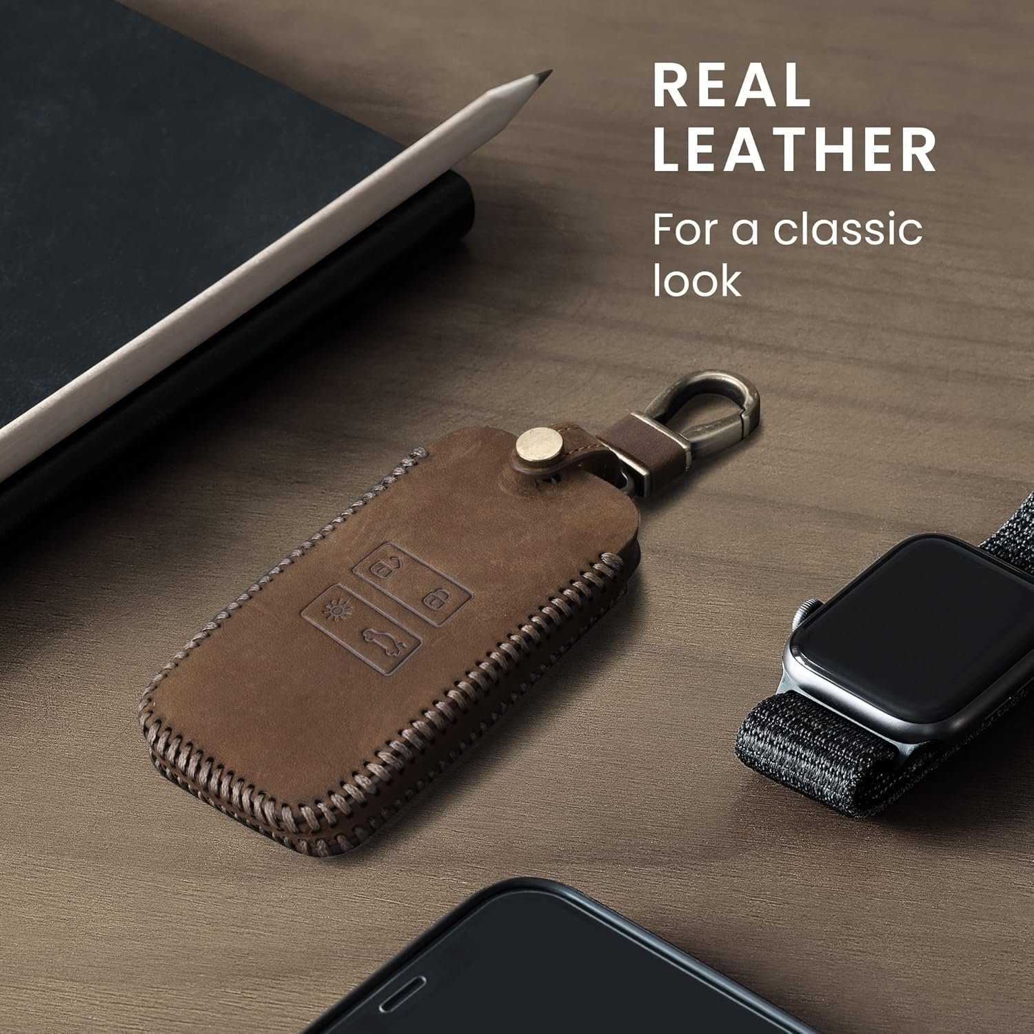 Σημείωση: Η θήκη είναι μόνο για το χειριστήριο και όχι για το κλειδί. Επειδή η θήκη είναι κατασκευασμένη από γνήσιο δέρμα, με τον χρόνο θα αποκτήσει μία φυσική πατίνα. Το δέρμα θα ωριμάσει και θα αποκτήσει πιο βαθύ χρώμα, χωρίς να φθαρεί, δημιουργώντας έναν όμορφο και πλούσιο χαρακτήρα που θα είναι μοναδικός.