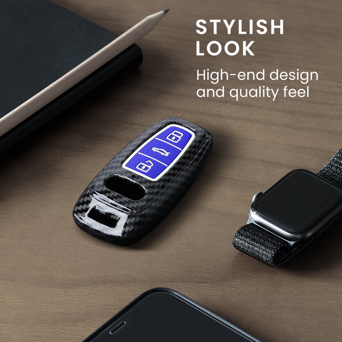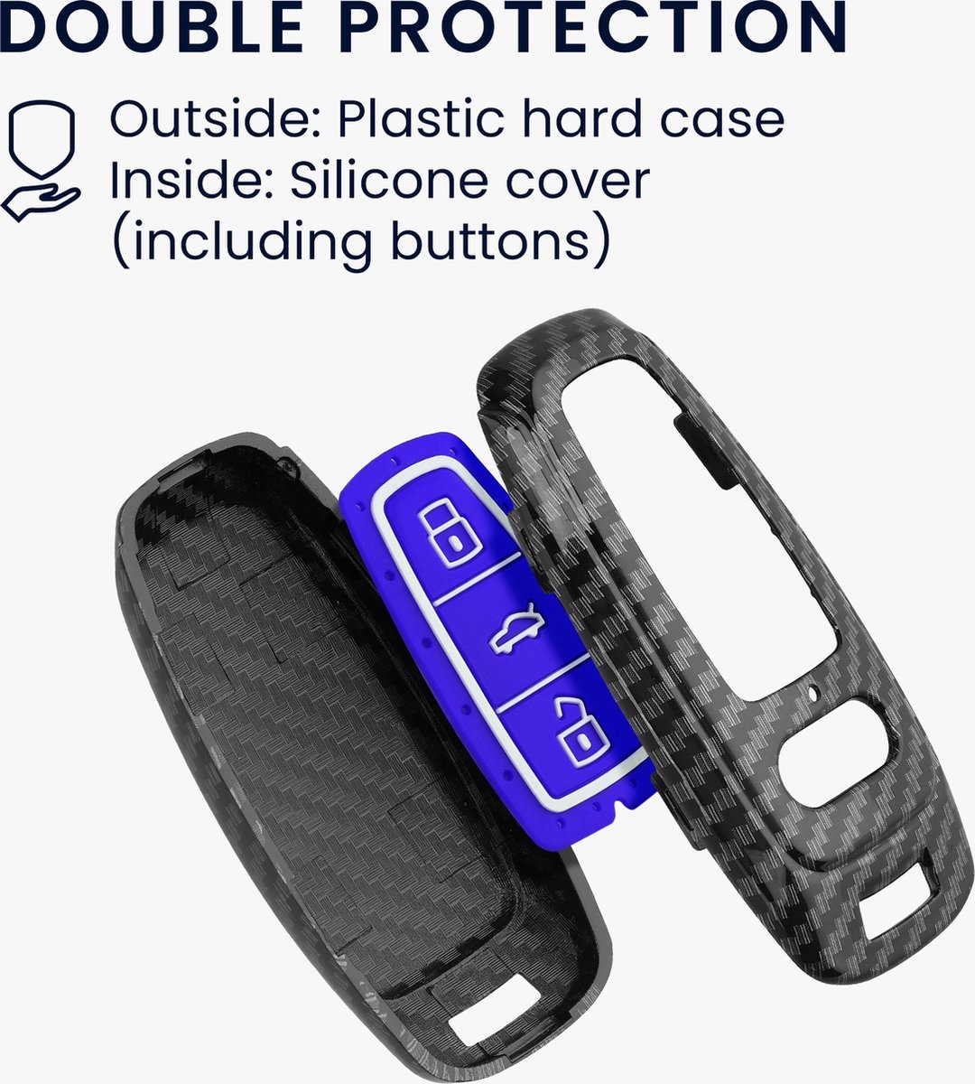 Το υψηλής ποιότητας PC, η απαλή σιλικόνη και ο κομψός της Carbon σχεδιασμός, προσφέρει άνετη εφαρμογή και απαλή αίσθηση στην αφή. Είναι ειδικά σχεδιασμένη για να ταιριάζει απόλυτα στο μοντέλο του κλειδιού του αυτοκινήτου σας, αυτή η θήκη τοποθετείται εύκολα χωρίς εργαλεία, προσφέροντας προστασία χωρίς παρεμβολές.