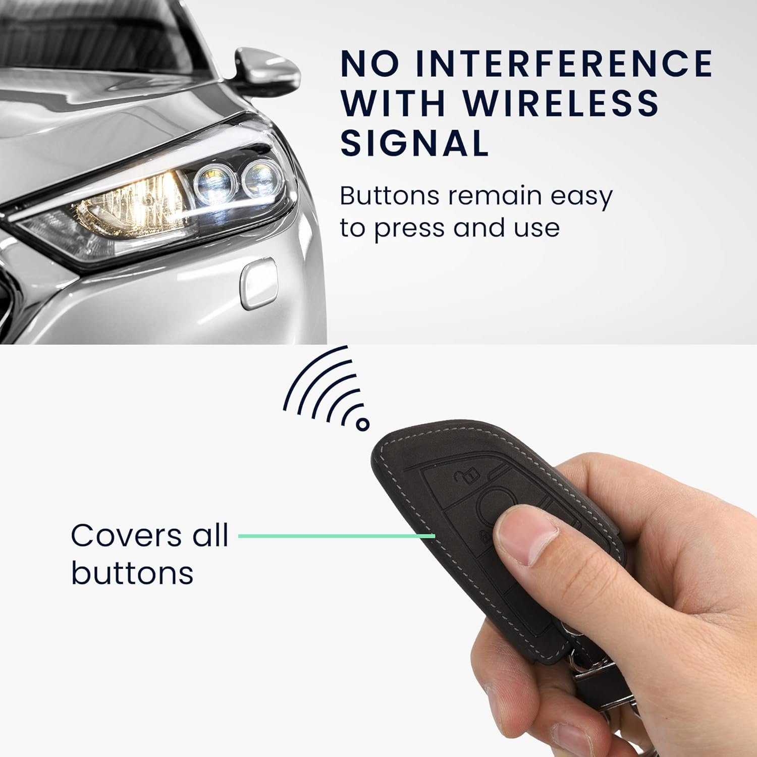 Το υψηλής ποιότητας συνθετικό PU δέρμα Nubuk και ο κομψός της σχεδιασμός, προσφέρει άνετη εφαρμογή και απαλή αίσθηση στην αφή. Είναι ειδικά σχεδιασμένη για να ταιριάζει απόλυτα στο μοντέλο του κλειδιού του αυτοκινήτου σας, αυτή η θήκη τοποθετείται εύκολα χωρίς εργαλεία, προσφέροντας προστασία χωρίς παρεμβολές.