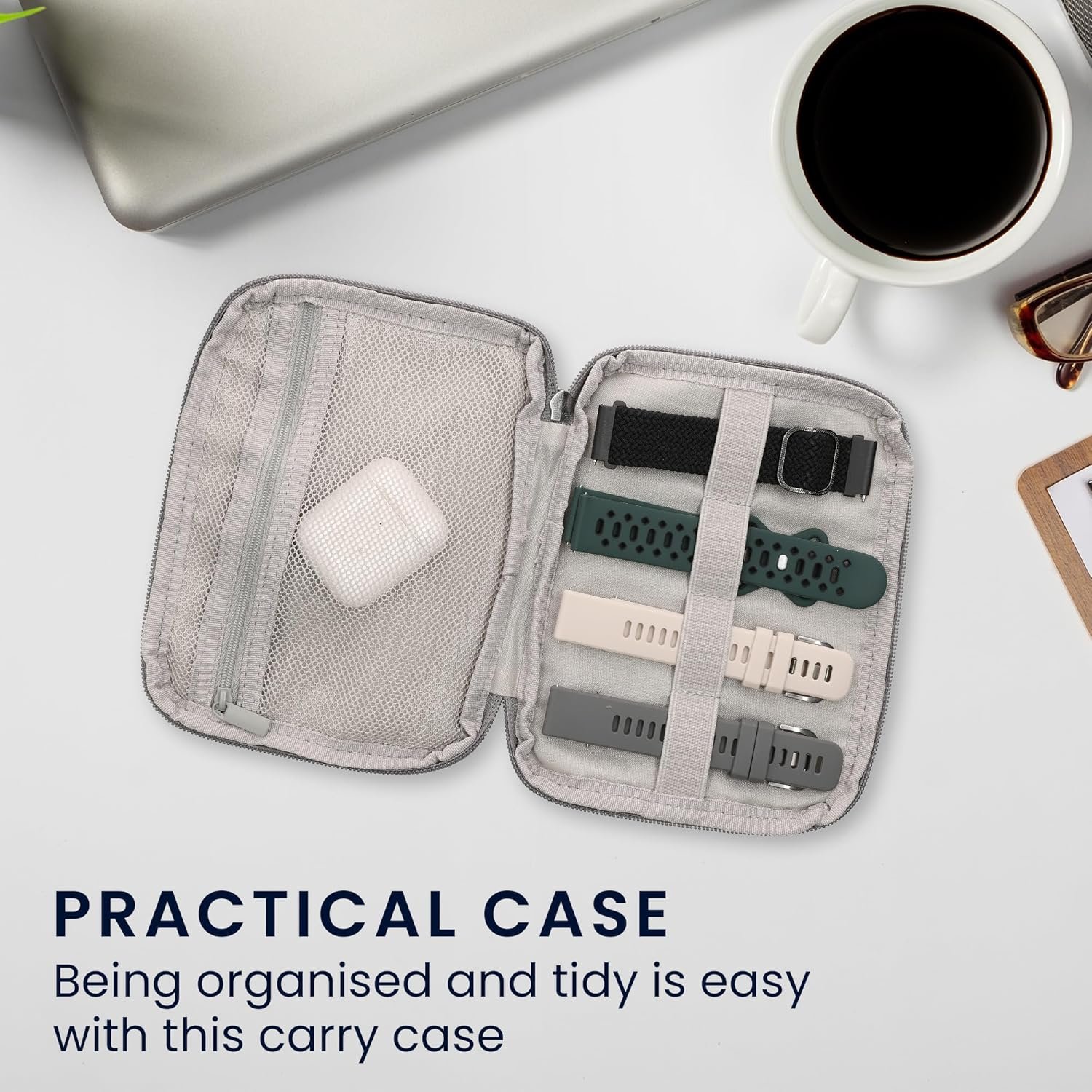 Διαθέτει ένα πρακτικό σχεδιασμό με εύκολο κλείσιμο με φερμουάρ και εσωτερικά μία δικτυωτή τσέπη για διάφορα αξεσουάρ. Με συμπαγές μέγεθος και διαστάσεις 18,5 x 14 cm, χωράει εύκολα στην τσάντα σας ώστε να έχετε πάντα μαζί σας οργανωμένα και προστατευμένα τα απαραίτητα αξεσουάρ του smartwatch σας!