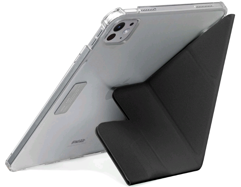 Το μοναδικό αναδιπλούμενο κάλυμμα της θήκης προσφέρει ευέλικτες γωνίες θέασης, επιτρέποντάς σας να επιλέξετε την ιδανική θέση για εργασία ή ψυχαγωγία, προσφέροντας ταυτόχρονα την ευκολία ενός τρίπτυχου σταντ.