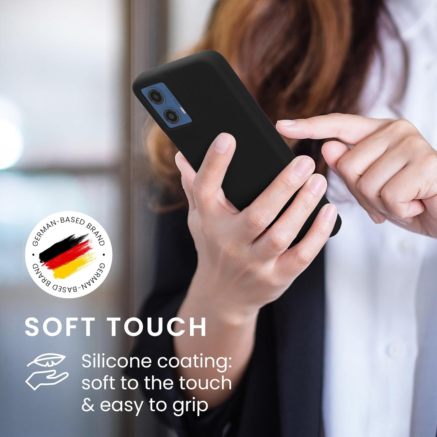 Ακόμη, σας παρέχει ένα απαλό φινίρισμα ως προς την αφή, με γομάτινη υφή εξωτερικά και παράλληλα διαθέτει αντιολισθητικό σχεδιασμό, για να έχετε τη βέλτιστη ασφάλεια. Επίσης, λόγω του υλικού της αποτρέπει τις φθορές, τη σκόνη και τα δακτυλικά αποτυπώματα.