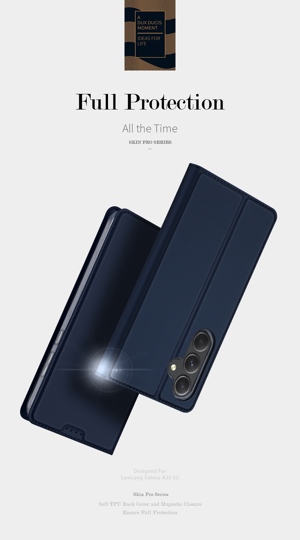 Η νέα θήκη - πορτοφόλι από τη Duxducis είναι ειδικά σχεδιασμένη για το Samsung Galaxy A35. Το κινητό σας εφαρμόζει άψογα στη θήκη σιλικόνης που περιέχεται μέσα στην εξωτερική θήκη, εξασφαλίζοντας με κομψό και εκλεπτυσμένο τρόπο την προστασία της συσκευής σας.