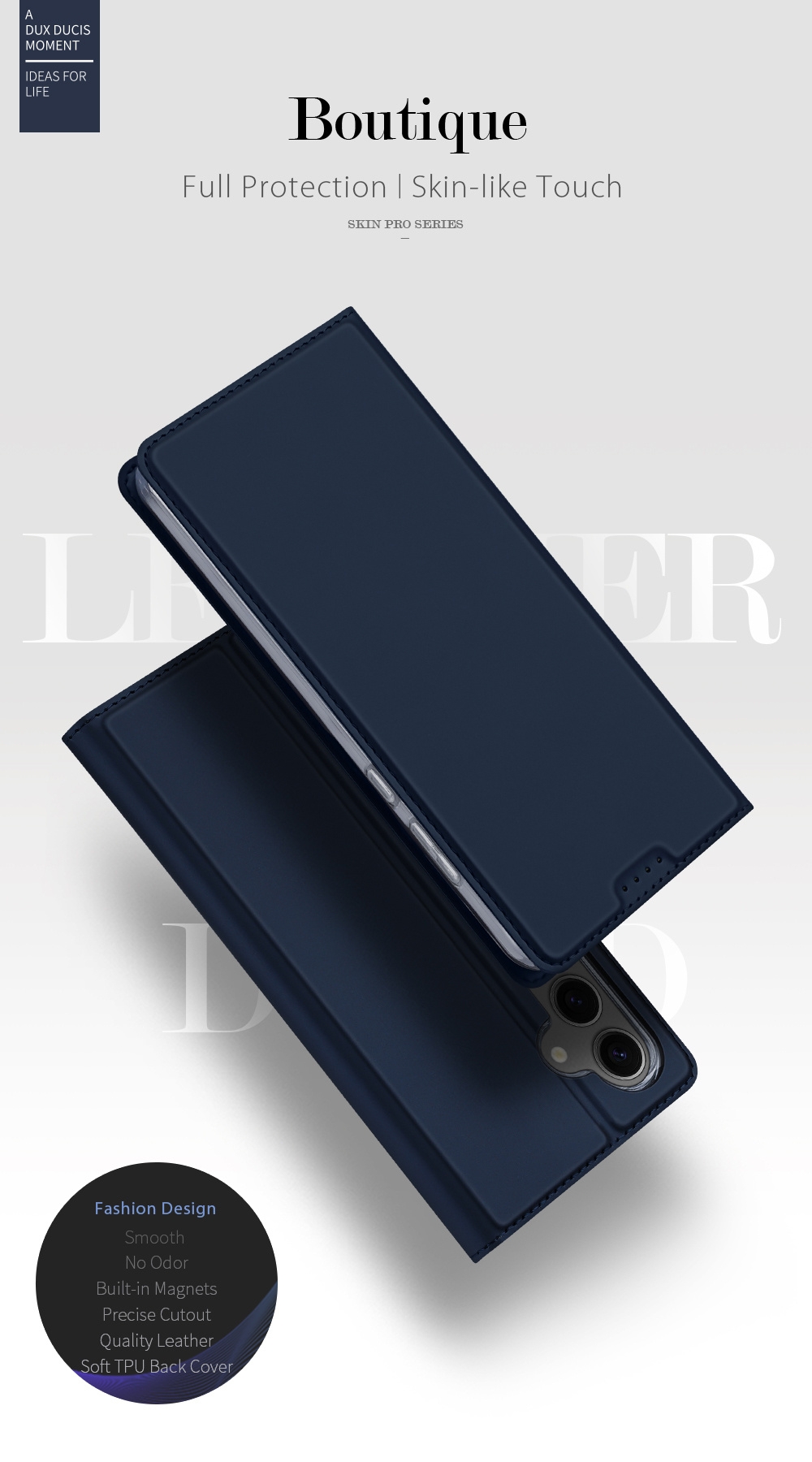 Η νέα θήκη - πορτοφόλι από τη Duxducis είναι ειδικά σχεδιασμένη για το Samsung Galaxy S24 Plus. Το κινητό σας εφαρμόζει άψογα στη θήκη σιλικόνης που περιέχεται μέσα στην εξωτερική θήκη, εξασφαλίζοντας με κομψό και εκλεπτυσμένο τρόπο την προστασία της συσκευής σας.