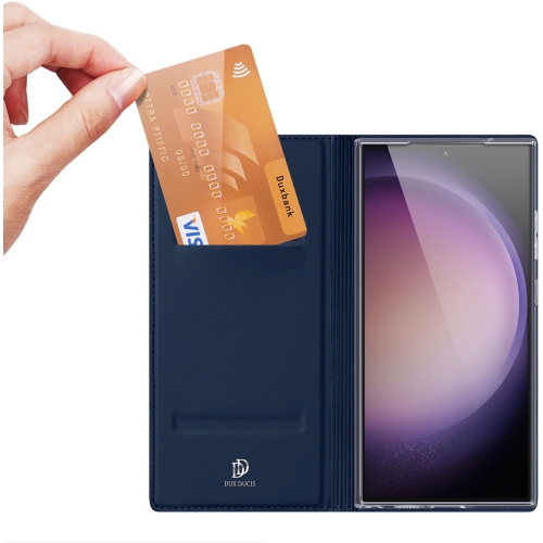 Η νέα θήκη - πορτοφόλι από τη Duxducis είναι ειδικά σχεδιασμένη για το Samsung Galaxy S24 Ultra. Το κινητό σας εφαρμόζει άψογα στη θήκη σιλικόνης που περιέχεται μέσα στην εξωτερική θήκη, εξασφαλίζοντας με κομψό και εκλεπτυσμένο τρόπο την προστασία της συσκευής σας.