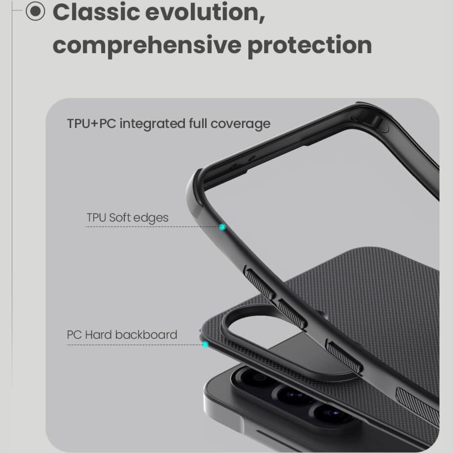 Η MagSafe θήκη Super Frosted Pro Magnetic της Nillkin είναι κατασκευασμένη για να εφαρμόζει τέλεια στο Samsung Galaxy A56 και να το προστατεύει από την καθημερινή χρήση χωρίς να προσθέτει όγκο στη συσκευή σας. Κατασκευασμένη από διπλή προστασία, σκληρού πολυανθρακικού PC και ανθεκτικού TPU, ώστε να προστατεύει από γρατζουνιές, φθορές ή χτυπήματα.