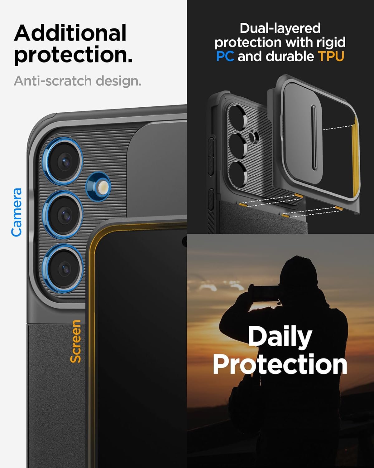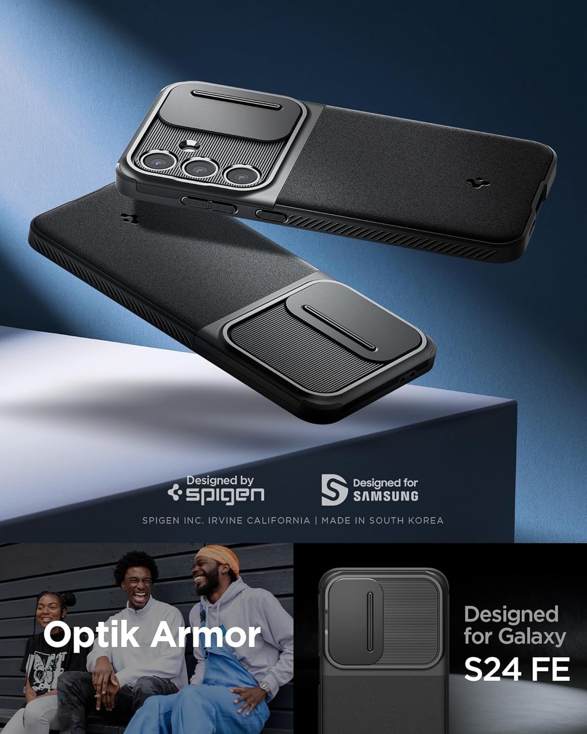 Η θήκη Optik Armor της Spigen είναι κατασκευασμένη για να εφαρμόζει τέλεια στο Samsung Galaxy S24 FE και να το προστατεύει από την καθημερινή χρήση και αποτελεσματικά, χωρίς να προσθέτει επιπλέον όγκο στη συσκευή σας.