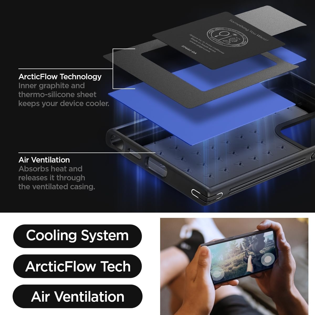 Η θήκη Cryo Armor της Spigen είναι κατασκευασμένη για να εφαρμόζει τέλεια στο Samsung Galaxy S24 Ultra και διαθέτει ένα εξαγωνικό μοτίβο AirCube και ArticFlow Tech, μία καινοτόμο τεχνολογία ψύξης για να μην θερμαίνεται η συσκευή σας! Επιπλέον, προστατεύει τη συσκευή σας από την καθημερινή χρήση χωρίς να προσθέτει επιπλέον όγκο.