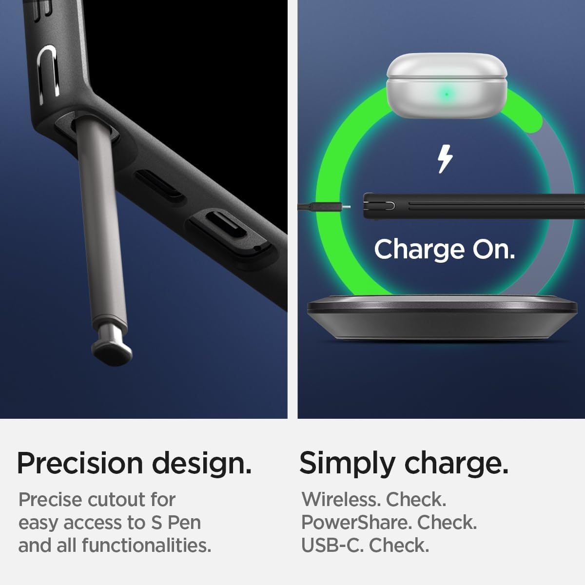 Κατασκευασμένη από TPU, PC, ένα εσωτερικό φύλο γραφίτη και θερμο-σιλικόνη, η οποία βοηθά στην μείωση της θερμότητας και απορροφά τους κραδασμούς με τη βοήθεια της τεχνολογίας Air Cushion, προστατεύοντας το Samsung Galaxy S24 Ultra από γρατσουνιές, φθορές, πτώσεις ή χτυπήματα. Επίσης, λόγω της φύσης του γραφίτη,το εσωτερικό της θήκης μπορεί να αναπτύξει μια λεπτή, φυσική αφή.