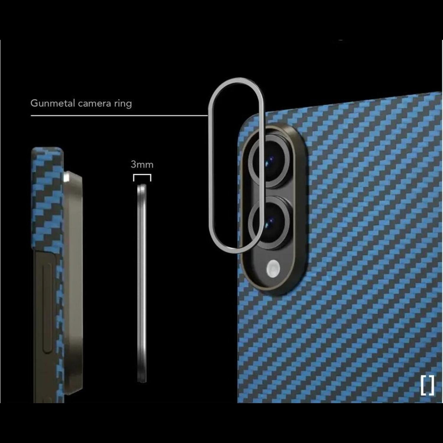 Η κατασκευή από υψηλής τεχνολογίας ίνες αραμιδίου 1500D Kevlar της Dupont εξασφαλίζει μέγιστη προστασία από γρατσουνιές, διάβρωση και αποχρωματισμούς, ενώ παράλληλα παραμένει εξαιρετικά ελαφριά και ανθεκτική. Το πλαίσιο της κάμερας προσφέρει επιπλέον προστασία από μικρές ζημιές, διατηρώντας την κάμερα του τηλεφώνου σας ασφαλή.