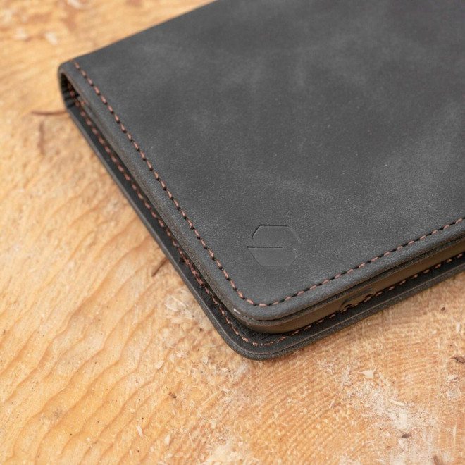 Κατασκευασμένη εξωτερικά από από λεπτό, ευχάριστο στην αφή οικολογικό δέρμα σουέτ, για απόλυτη ανθεκτικότητα, ενώ εσωτερικά διαθέτει σιλικόνη, για ακόμα μεγαλύτερη σταθερότητα. Επίσης, θα προστατέψει το κινητό σας από σκόνη, γρατσουνιές, προσκρούσεις και πτώσεις. Η θήκη είναι φινιρισμένη με ανθεκτικές ραφές περιμετρικά, δίνοντας έμφαση στην κλασική σχεδίαση της θήκης.