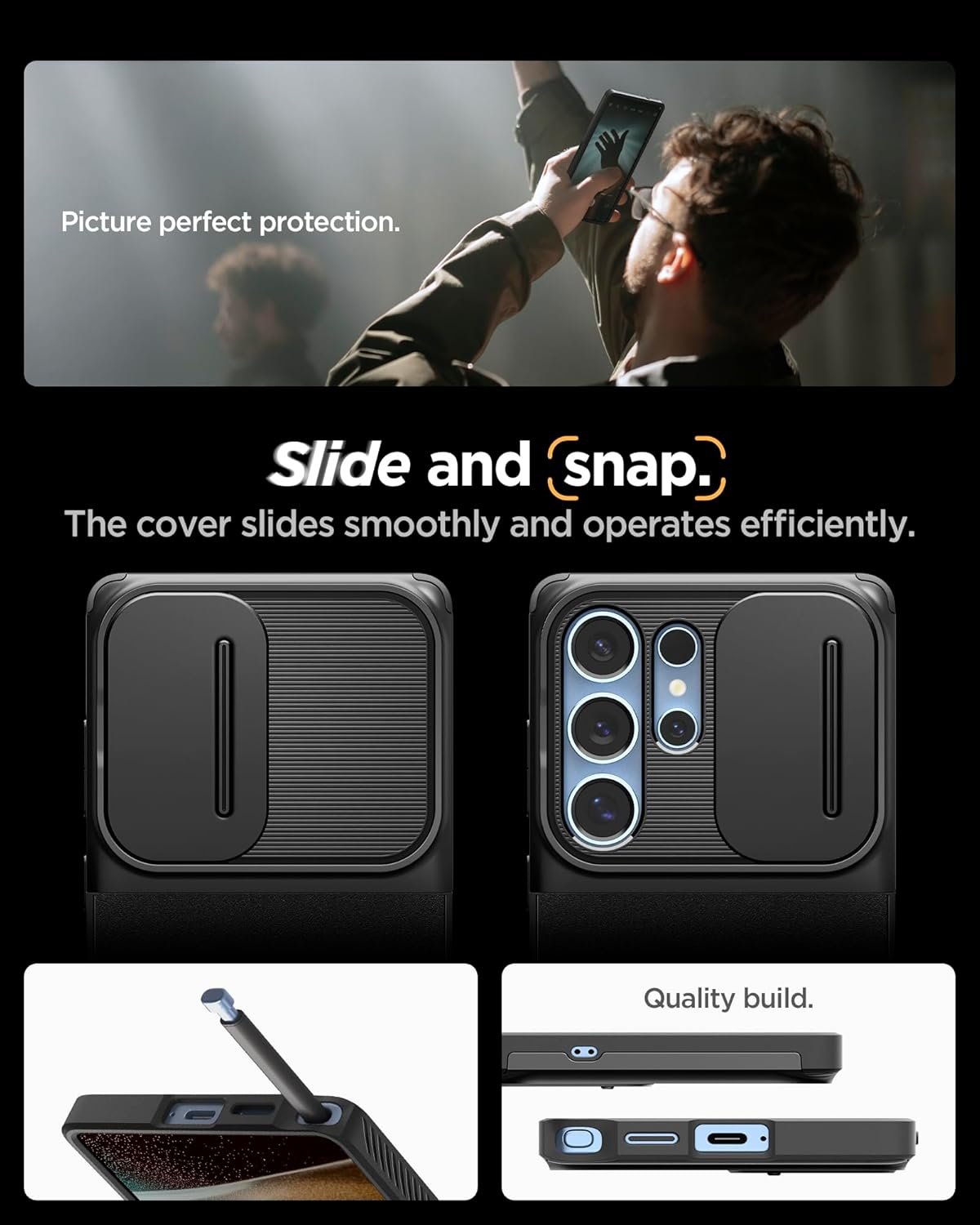 Η θήκη Optik Armor της Spigen είναι κατασκευασμένη για να εφαρμόζει τέλεια στο Samsung Galaxy S25 Ultra και να το προστατεύει από την καθημερινή χρήση και αποτελεσματικά, χωρίς να προσθέτει επιπλέον όγκο στη συσκευή σας.