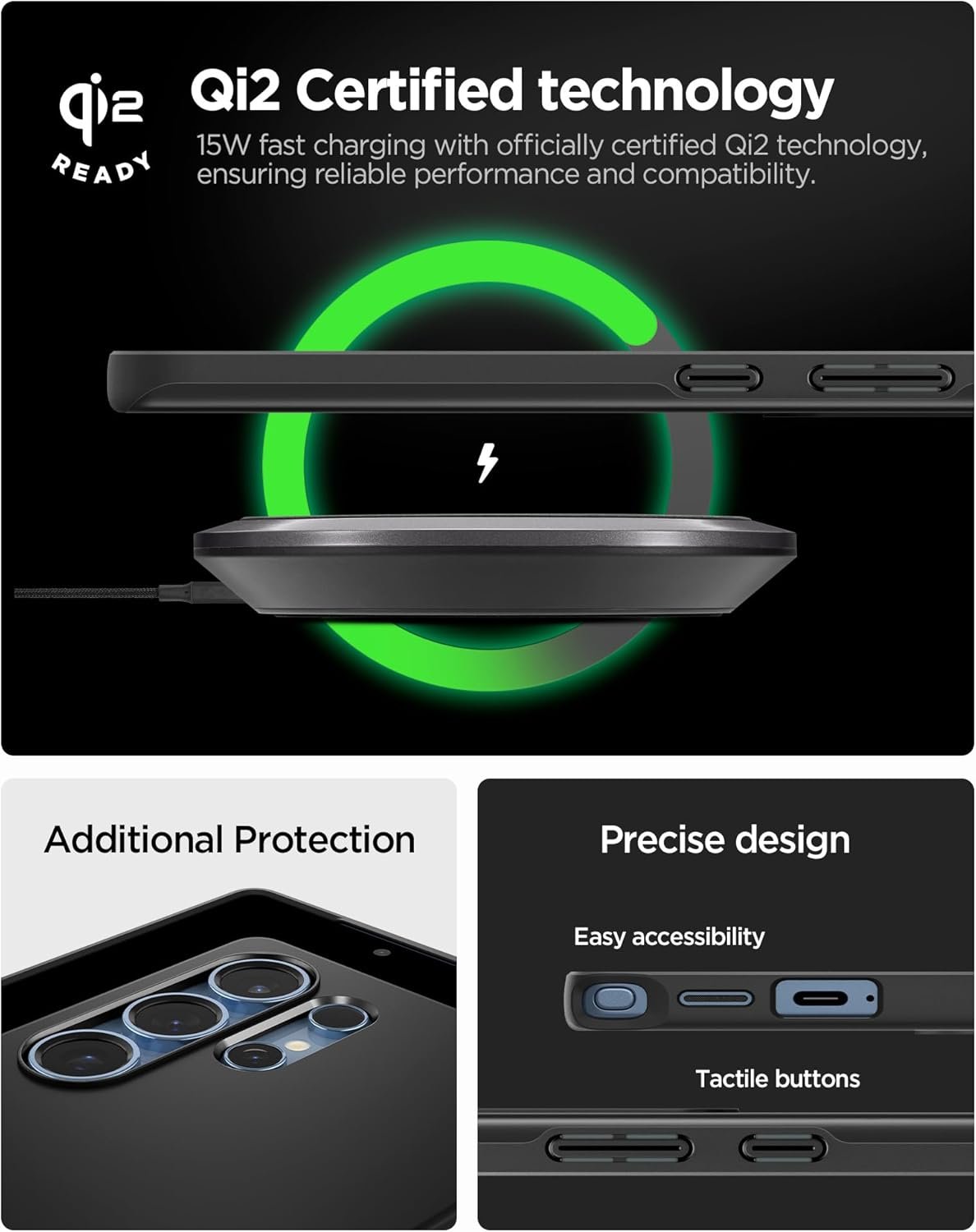 Η MagSafe θήκη Thin Fit MagFit της Spigen είναι κατασκευασμένη για να εφαρμόζει τέλεια στο Samsung Galaxy S25 Ultra και να το προστατεύει από την καθημερινή χρήση χωρίς να προσθέσει όγκο στη συσκευή σας!