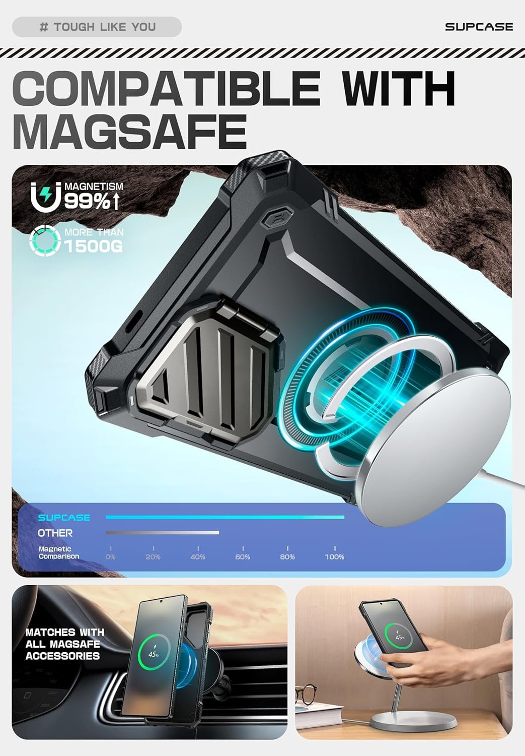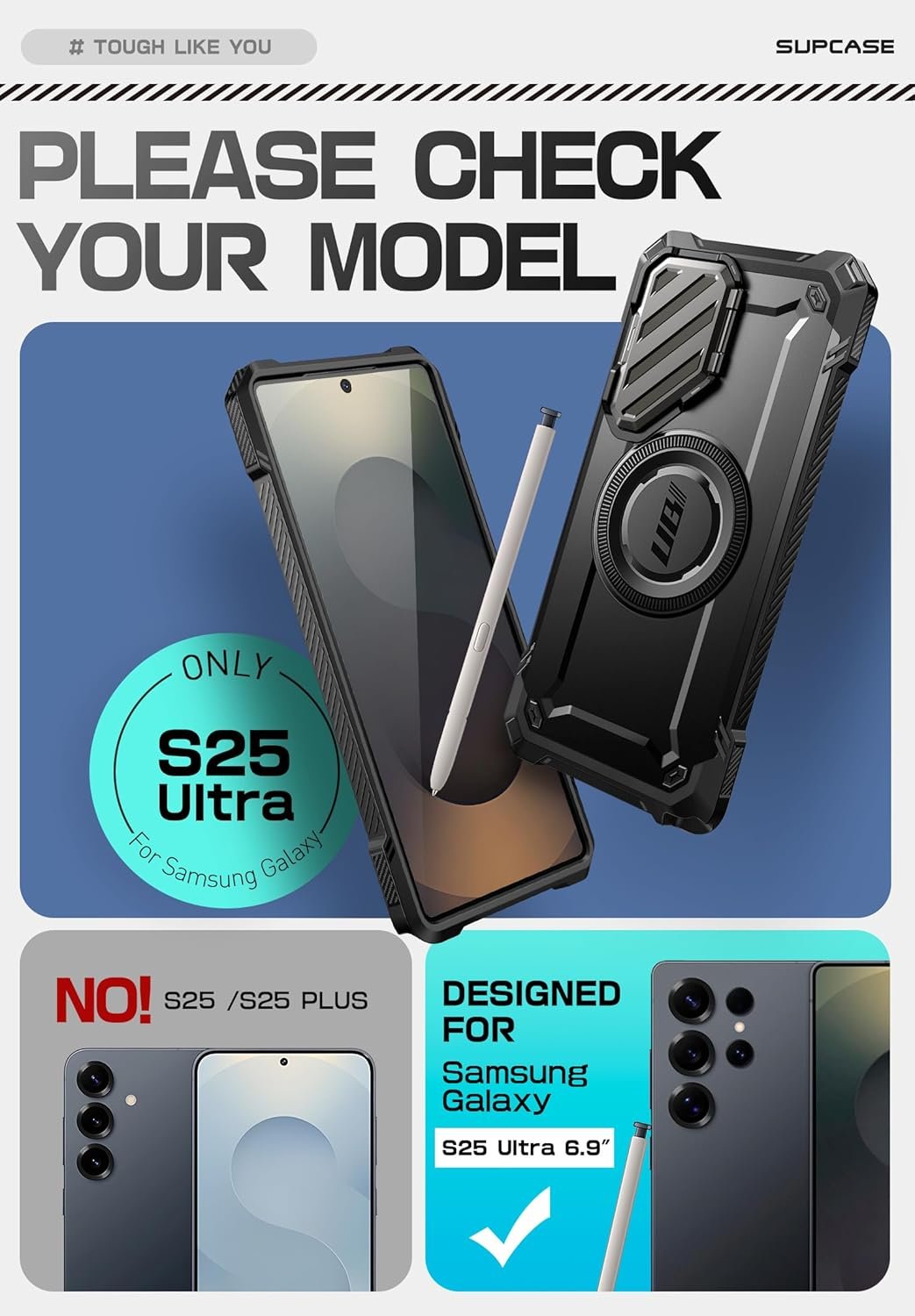 Η ανθεκτική MagSafe θήκη Unicorn Beetle XT Mag από την Supcase, είναι ειδικά σχεδιασμένη για το Samsung Galaxy S25 Ultra. Έχει κατασκευαστεί από ένα συνδυασμό μαλακού TPU και πολυκαρβονικού πλαστικού PC, για να είναι εξαιρετικά ανθεκτική σε σκόνες, πτώσεις και χτυπήματα.