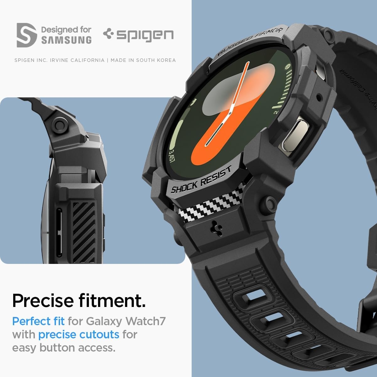 Η θήκη Rugged Armor Pro από την Spigen είναι ειδικά κατασκευασμένη για το αγαπημένο σας Samsung Galaxy Watch 7 44mm, εξαιρετικά ανθεκτική και διατίθεται σε πλαίσιο uni-body με δυνατότητα ρύθμισης.