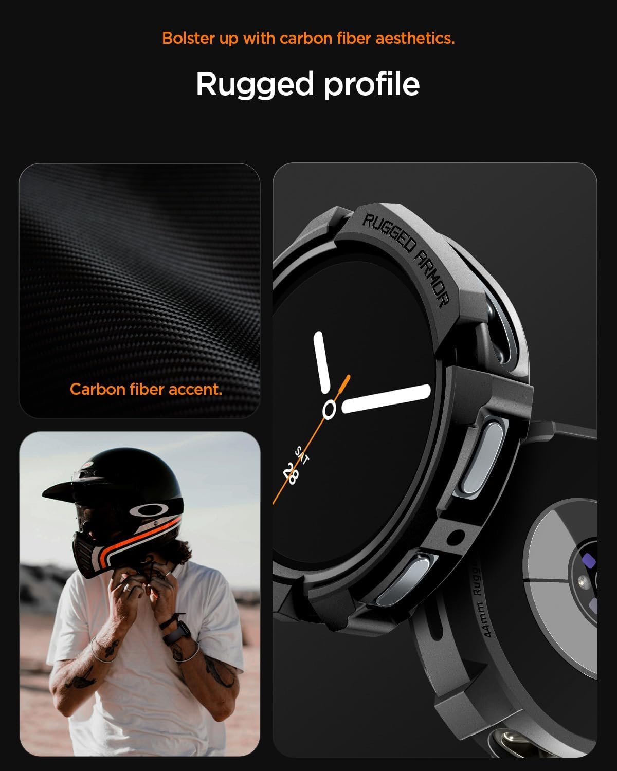 Είναι ελαστική με φινίρισμα από ανθρακονήματα και εύκαμπτη προστατεύοντας το Samsung Galaxy Watch 8 44mm από γρατζουνιές και φθορές. Επίσης, είναι πιστοποιημένη στρατιωτικά με MIL STD 810G-516.6 και ανθεκτική σε πτώσεις 2 μέτρων.
