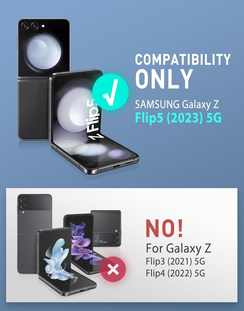 Η θήκη είναι συμβατή μόνο με το Samsung Galaxy Z Flip5 και όχι με το Samsung Galaxy Z Flip6, Z Flip4, Z Flip3 5G ή Z Flip.