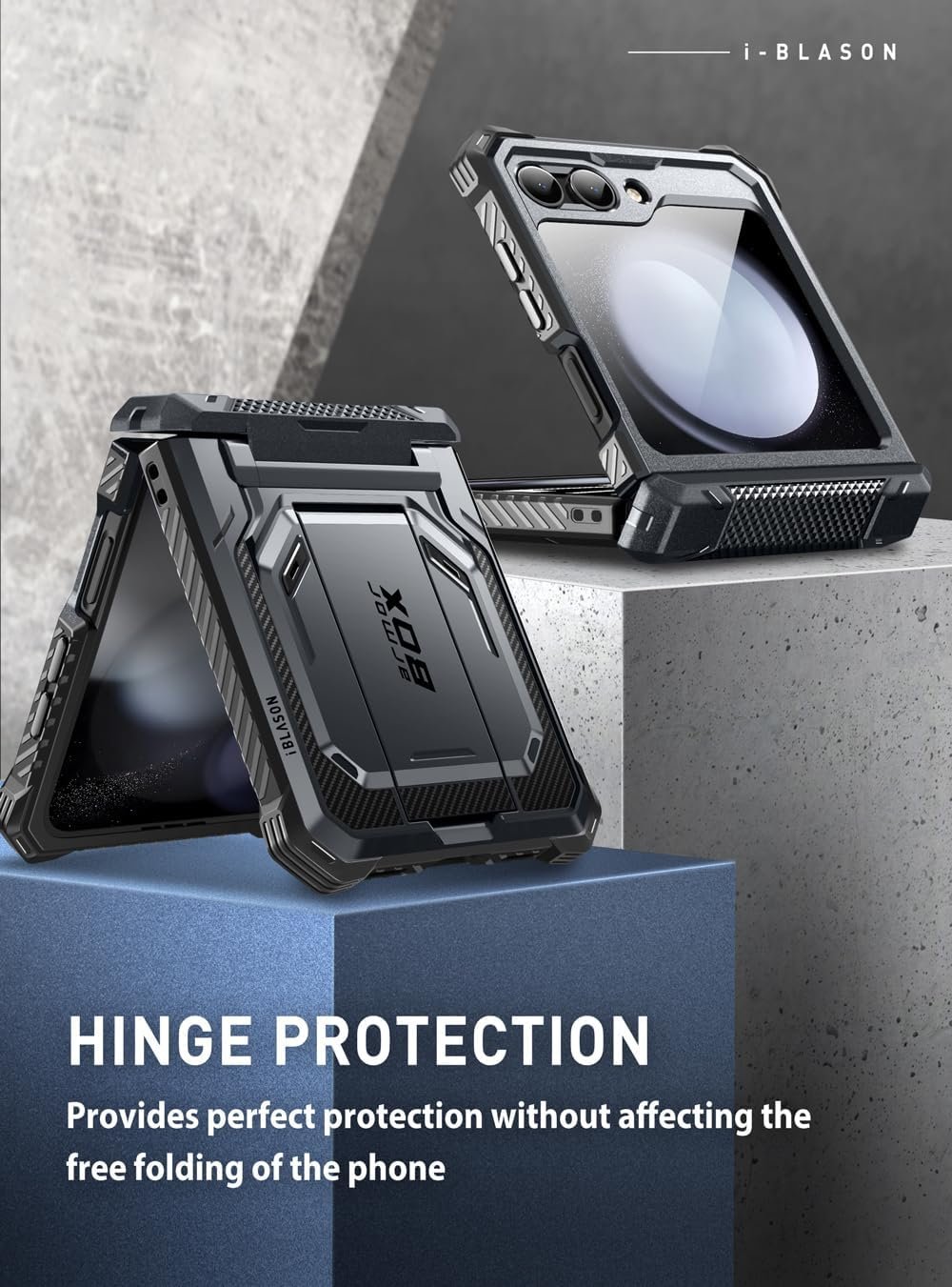 Η ανθεκτική και μοναδική θήκη i-Blason Armorbox από την Supcase είναι ειδικά σχεδιασμένη για το Samsung Galaxy Z Flip5. Έχει κατασκευαστεί από ένα συνδυασμό μαλακού TPU και πολυκαρβονικού πλαστικού PC, για να είναι εξαιρετικά ανθεκτική σε σκόνες, πτώσεις και χτυπήματα.