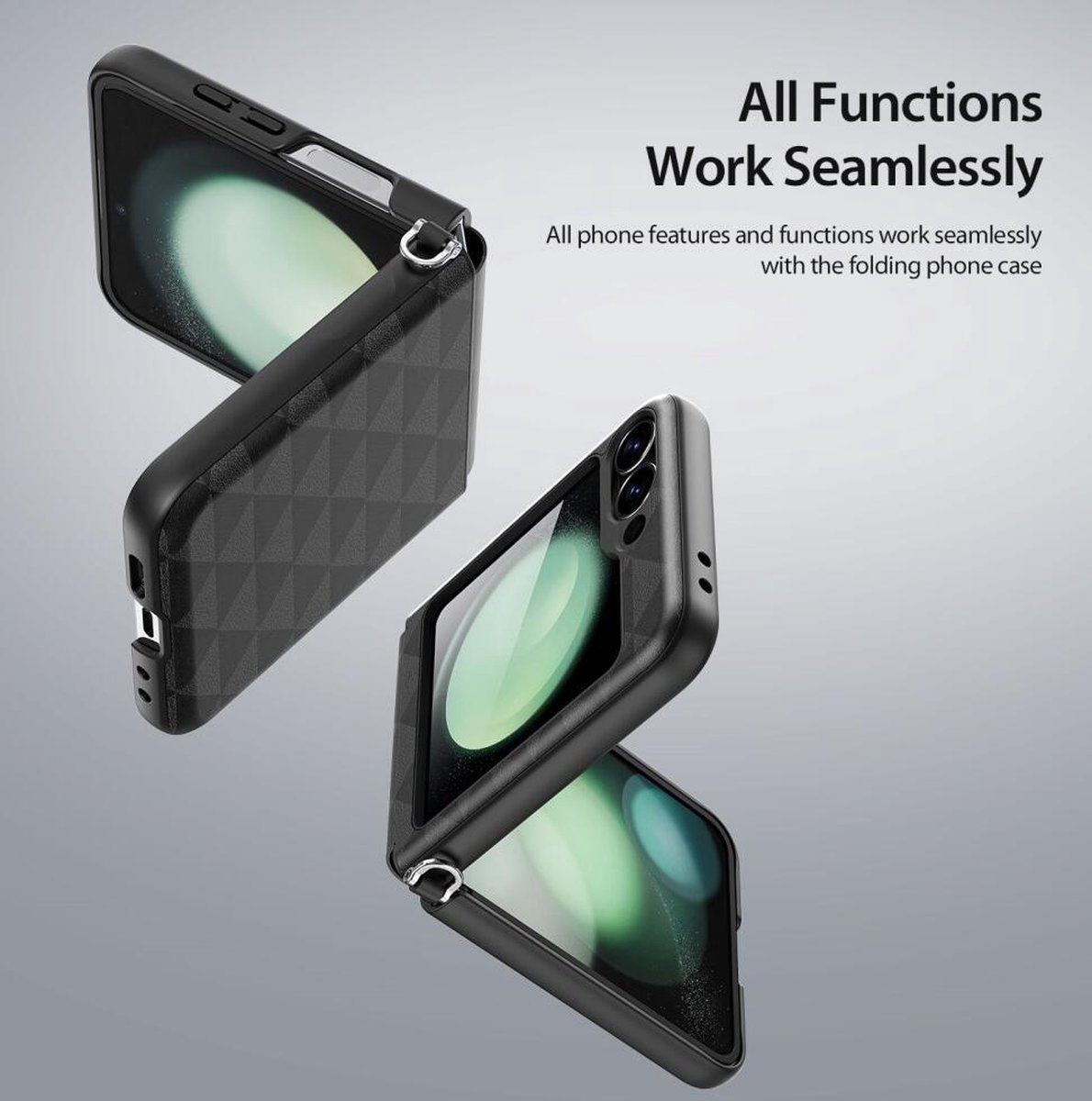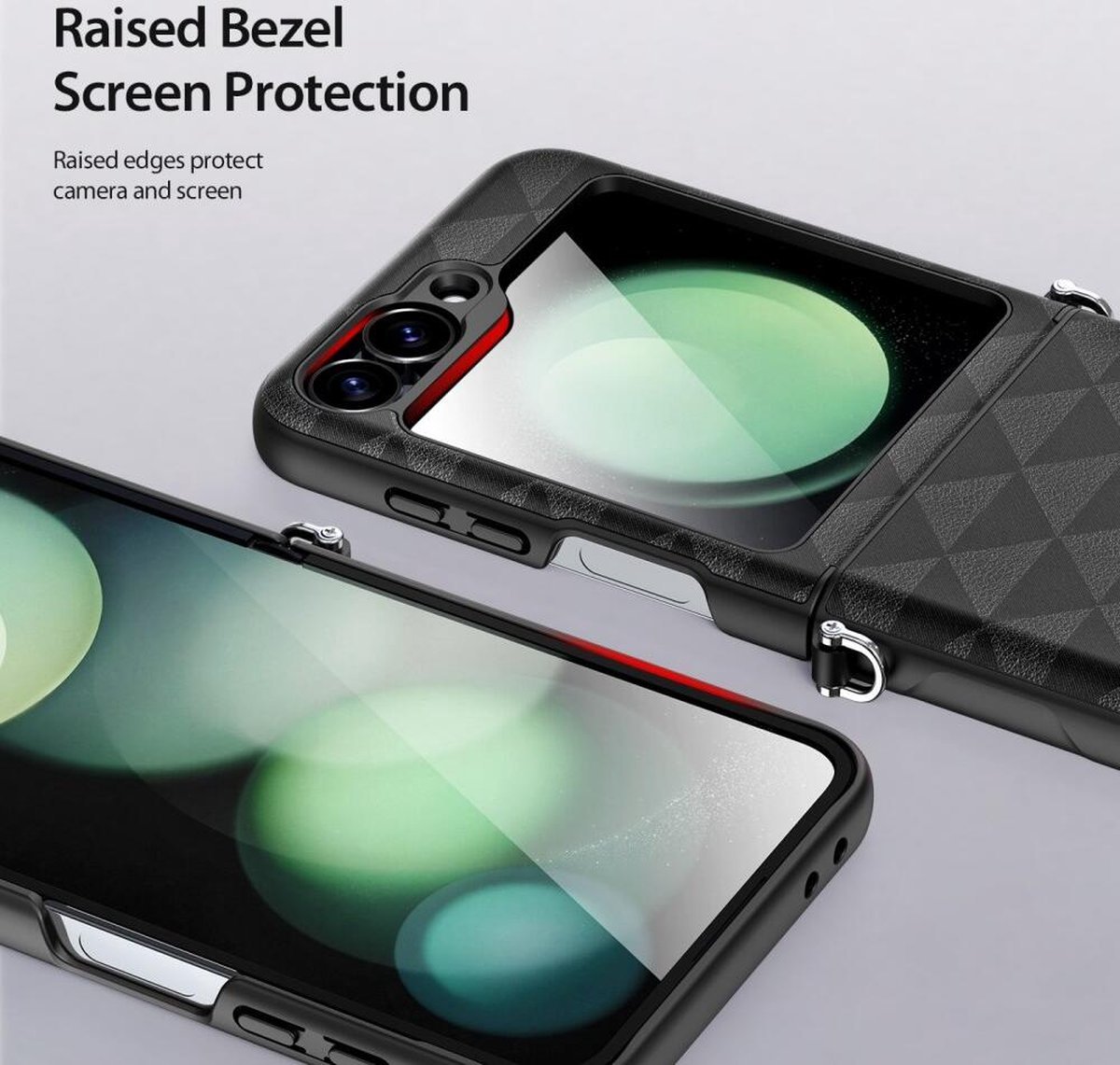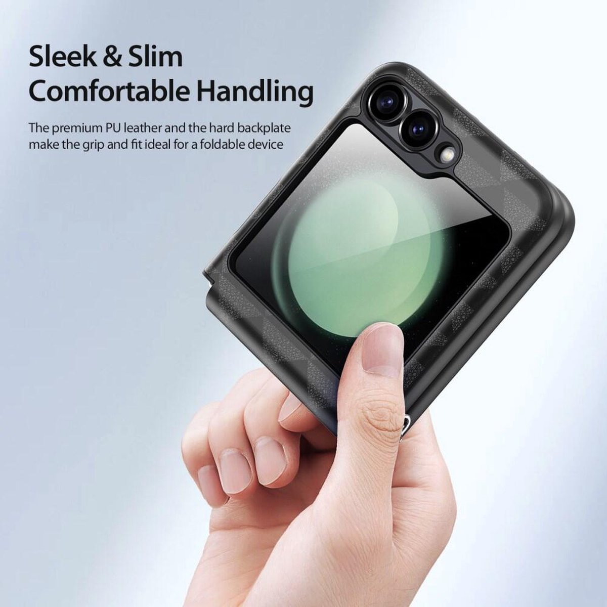 Κατασκευασμένη από υψηλής ποιότητας PU δέρμα και σκληρό PC στην πλάτη, η θήκη προσφέρει πλήρη και ισχυρή προστασία στο Samsung Galaxy Z Flip6 με τέτοιο τρόπο που ενισχύει και την αισθητική της συσκευής σας. Τέλος, διαθέτει ενσωματωμένη προστασία στον μεντεσέ, καλύπτοντας τον μεντεσέ του τηλεφώνου όταν αυτό είναι διπλωμένο, για επιπλέον προστασία.