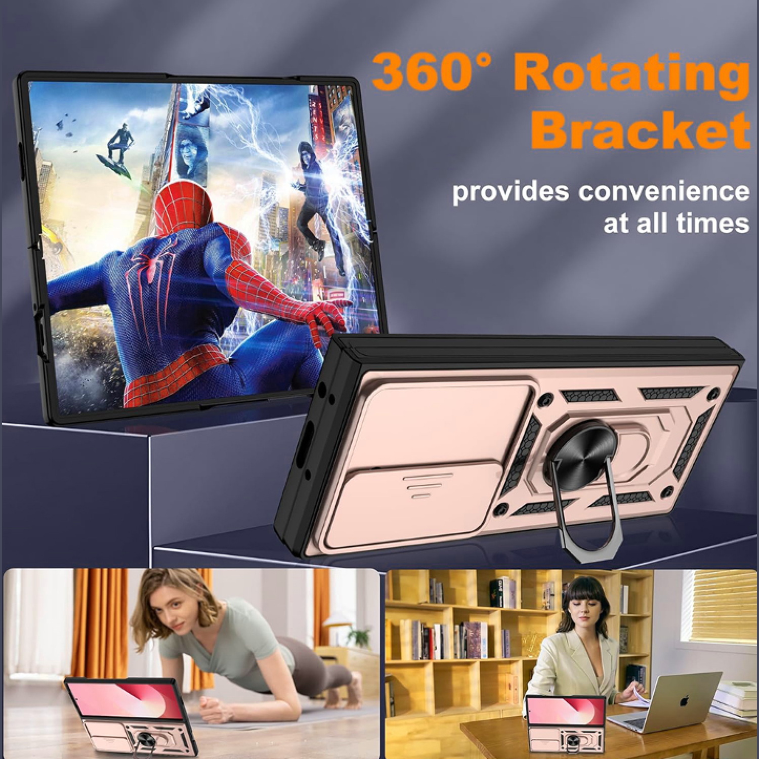 Διαθέτει ένα ανθεκτικό μεταλλικό ring holder που σας εξασφαλίζει σταθερό κράτημα, αλλά προσφέρει επίσης απόλυτη ελευθερία χρήσης, καθώς επιτρέπει την περιστροφή 360°, κλίση έως και 110° και μετατρέπεται βάση ώστε να βλέπετε άνετα τα αγαπημένα σας βίντεο.