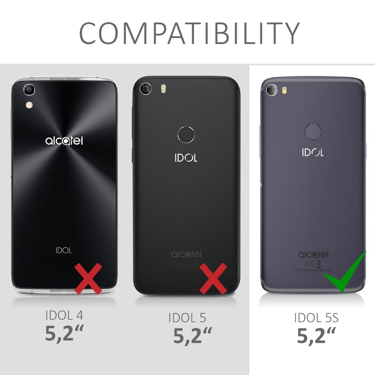 Η θήκη είναι συμβατή μόνο με το Alcatel Idol 5s και όχι με το Alcatel Idol 5.