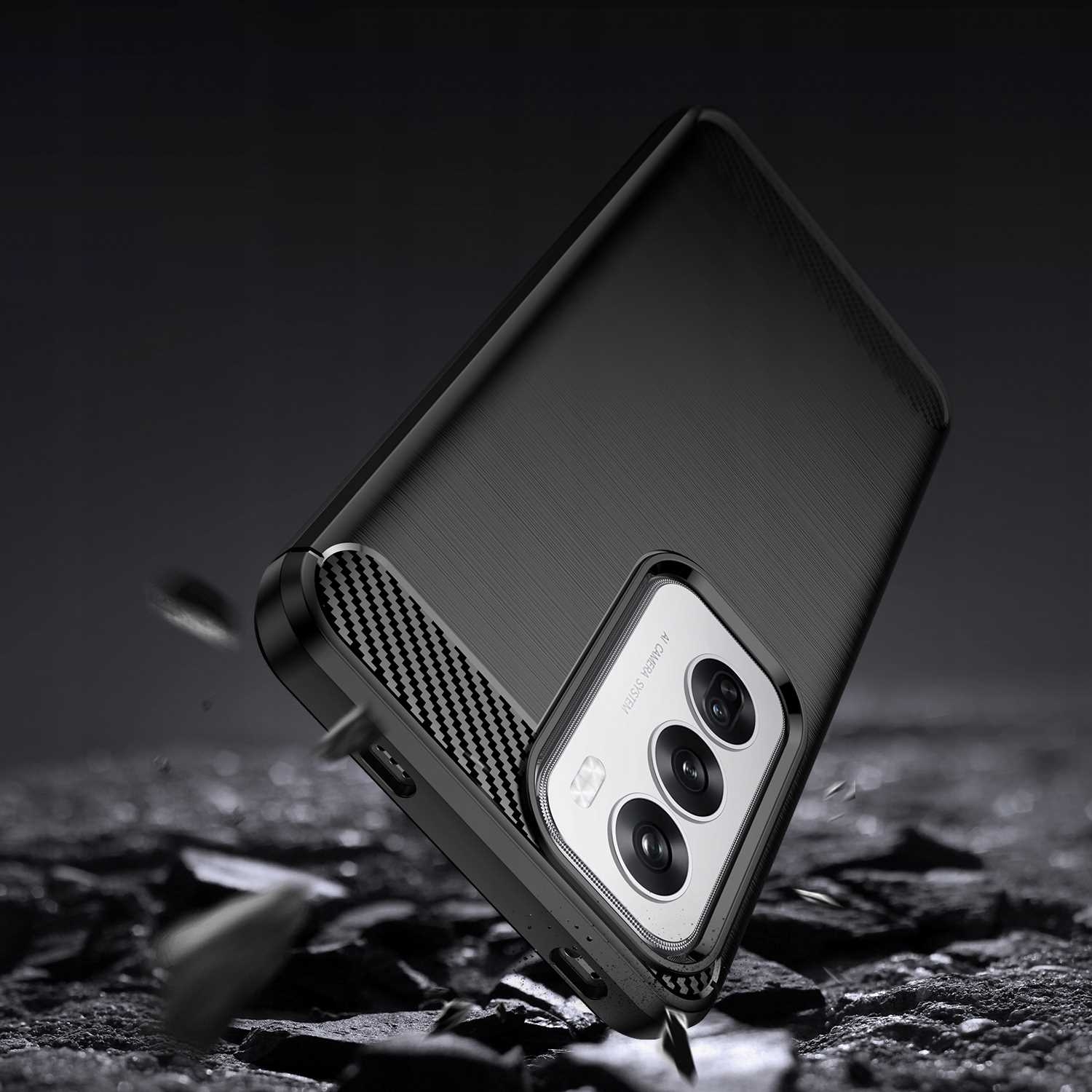 Είναι κατασκευασμένη από εύκαμπτη θερμοπλαστική πολυουρεθάνη TPU, η οποία απορροφά τους κραδασμούς. Διαθέτει ένα μοναδικό φινίρισμα από ανθρακονήματα εξωτερικά, ενώ εσωτερικά έχει έναν κυψελοειδή σχεδιασμό, ώστε να προστατεύει το Oppo Reno12 από γρατζουνιές, φθορές, πτώσεις ή χτυπήματα.