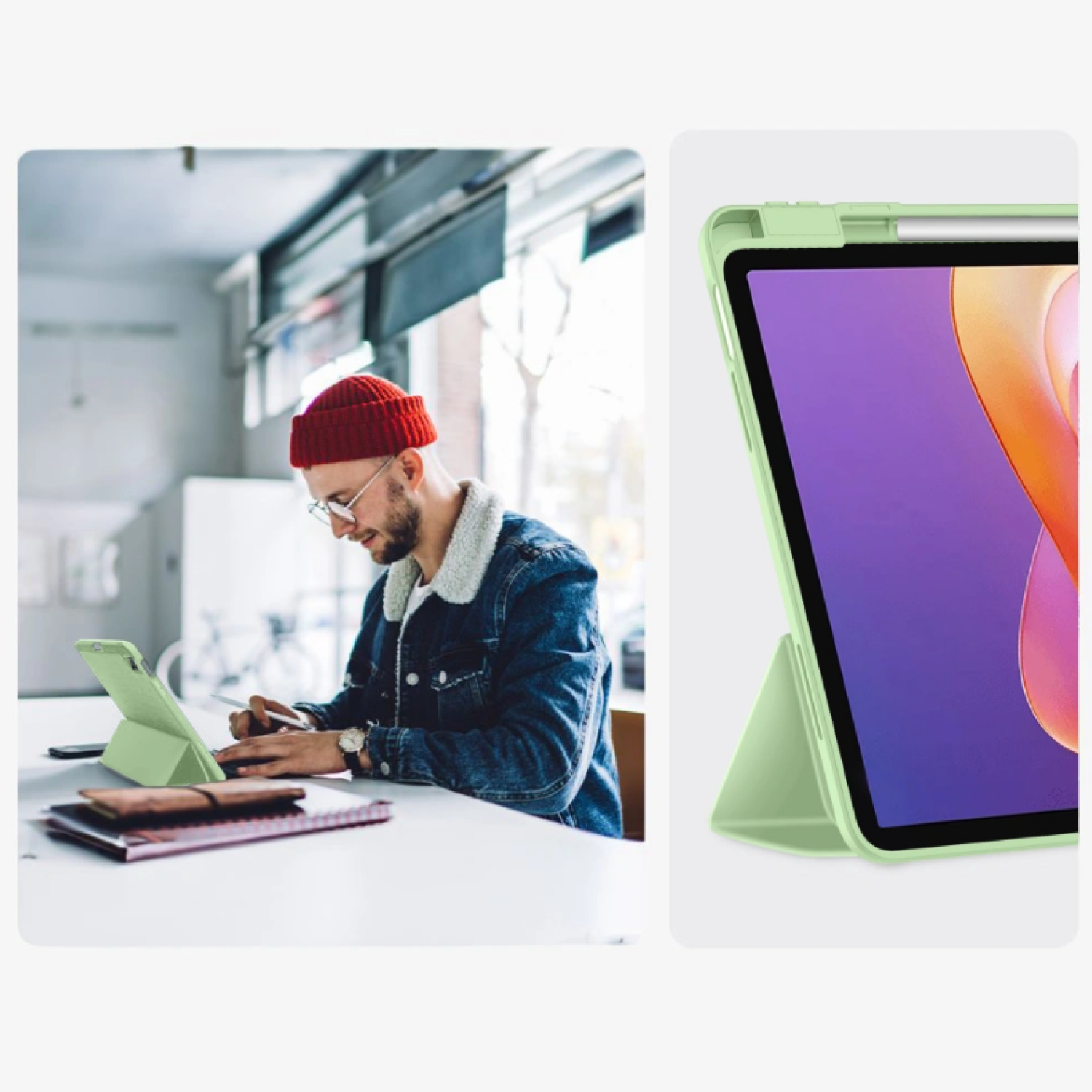 Προστατεύει απόλυτα την θήκη σας από γραντζουνιές, σκόνη και ενδεχόμενες πτώσεις, ενώ παράλληλα παραμένει λεπτή και ελαφριά! Διαθέτει λειτουργία wake on open και sleep on close η οποία ανοίγει και κλείνει αυτόματα το Xiaomi Redmi Pad 2 11".