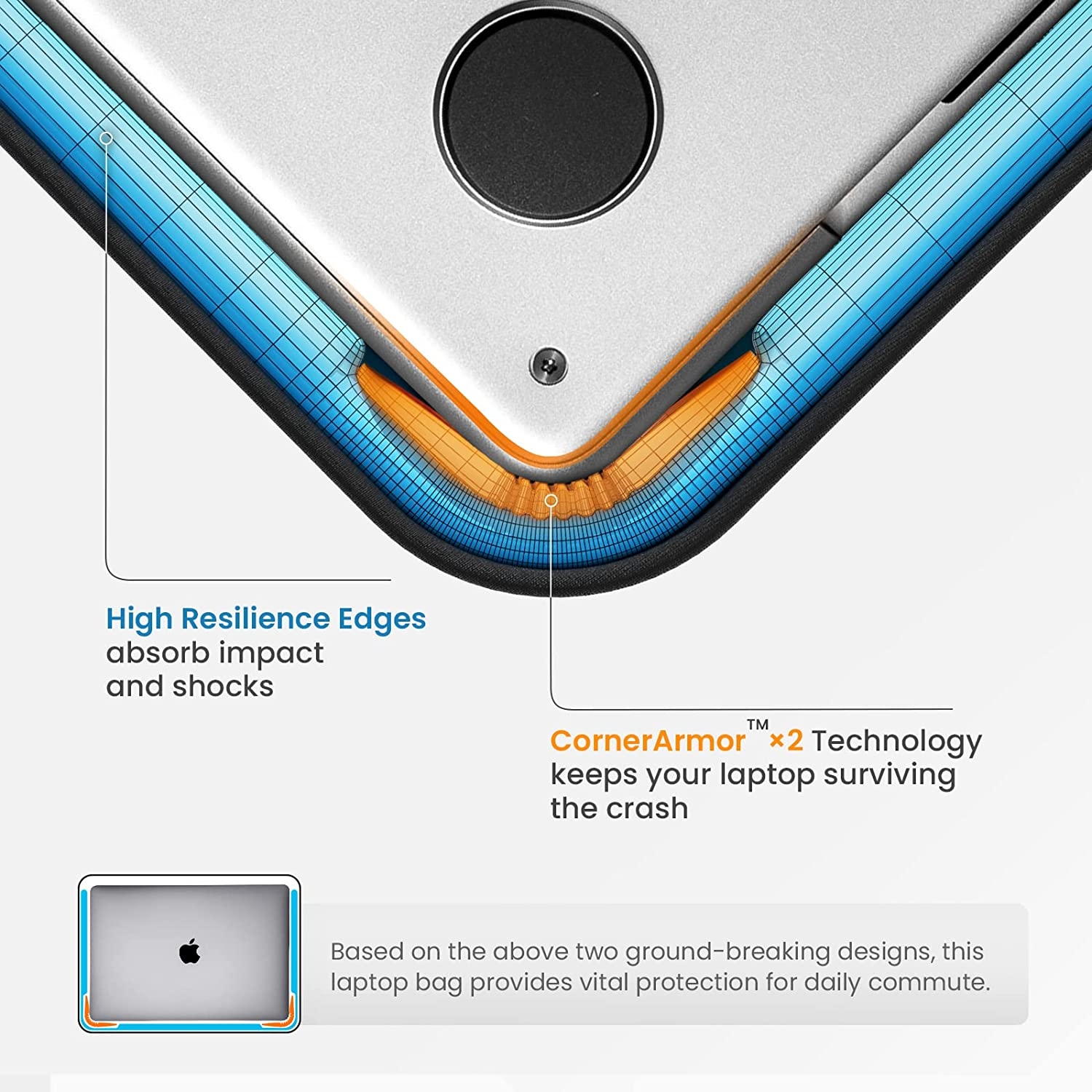 Με τον αυθεντικό καινοτόμο σχεδιασμό CornerArmor στις κάτω γωνίες, προστατεύει τον φορητό υπολογιστή σας από ατυχήματα, όπως ένας αερόσακος αυτοκινήτου. Η απαλή φλις επένδυση με χοντρό μαξιλάρι προσφέρει εξαιρετική προστασία για φορητό υπολογιστή από καθημερινές γρατσουνιές και χτυπήματα.