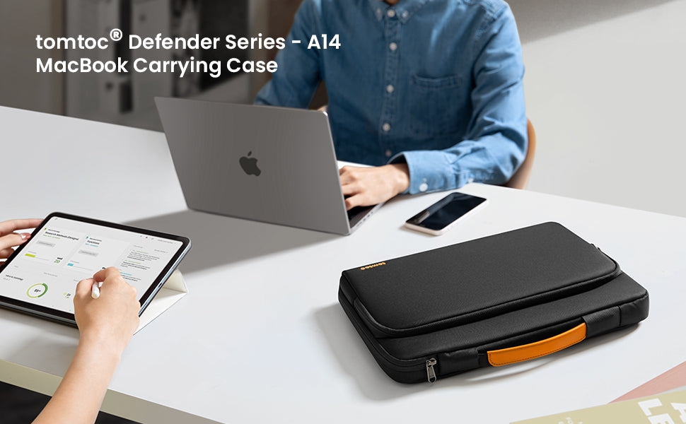 Η τσάντα χειρός Defender A14 της Tomtoc είναι ιδανική για προστασία, την καθημερινή μεταφορά και αποθήκευση του αγαπημένου σας Laptop 15''. Ο πολυτελής σχεδιασμός και τα υλικά υψηλής ποιότητας, σε συνδυασμό με την πρακτικότητα και τη γενική χρησιμότητα, καθιστούν την τσάντα ένα απαραίτητο καθημερινό αξεσουάρ.
