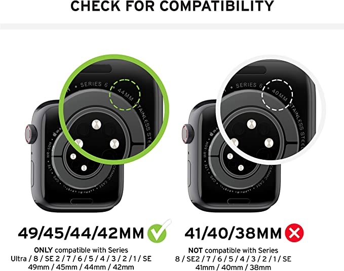 Το λουράκι είναι συμβατό μόνο με το Apple Watch Ultra3/Ultra2/Ultra1/SE3/SE2/SE1/11/10/9/8/7/6/5/4 (49/46/45/44mm) και όχι με το Apple Watch SE3/SE2/SE1/11/10/9/8/7/6/5/4 (42/41/40mm).