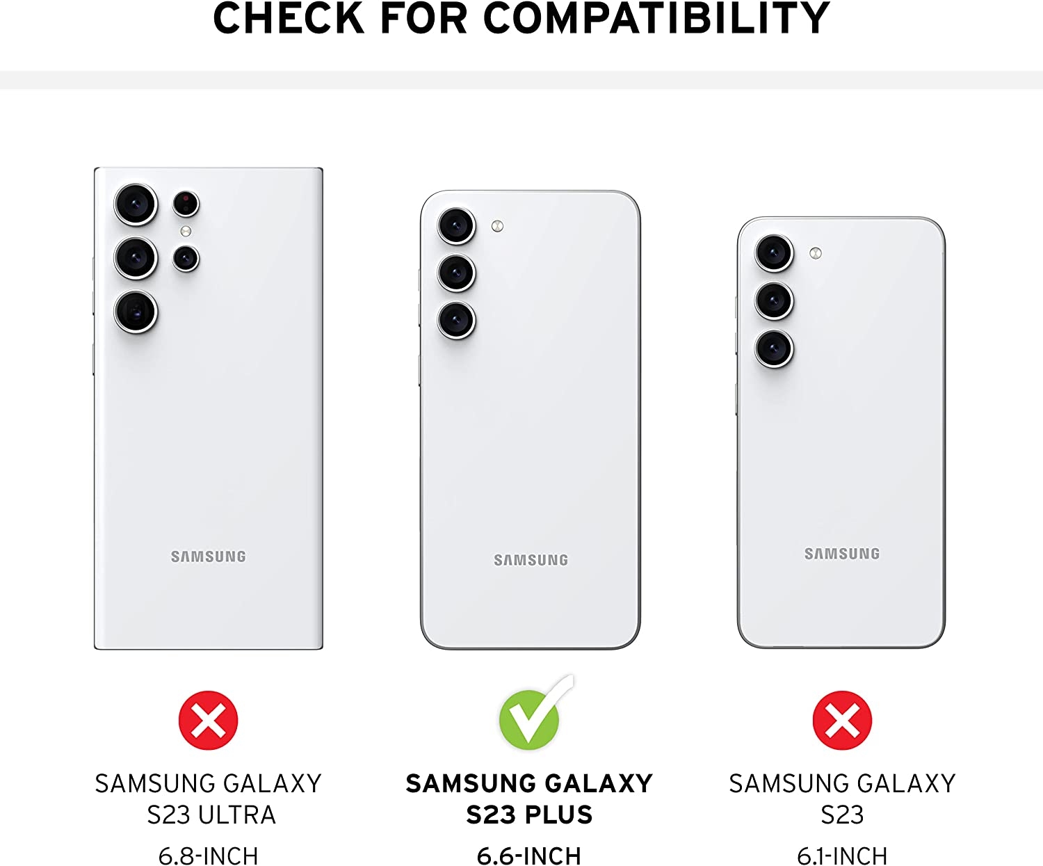 Η θήκη είναι συμβατή μόνο με το Samsung Galaxy S23 Plus και όχι με το Samsung Galaxy S23 ή S23 Ultra.