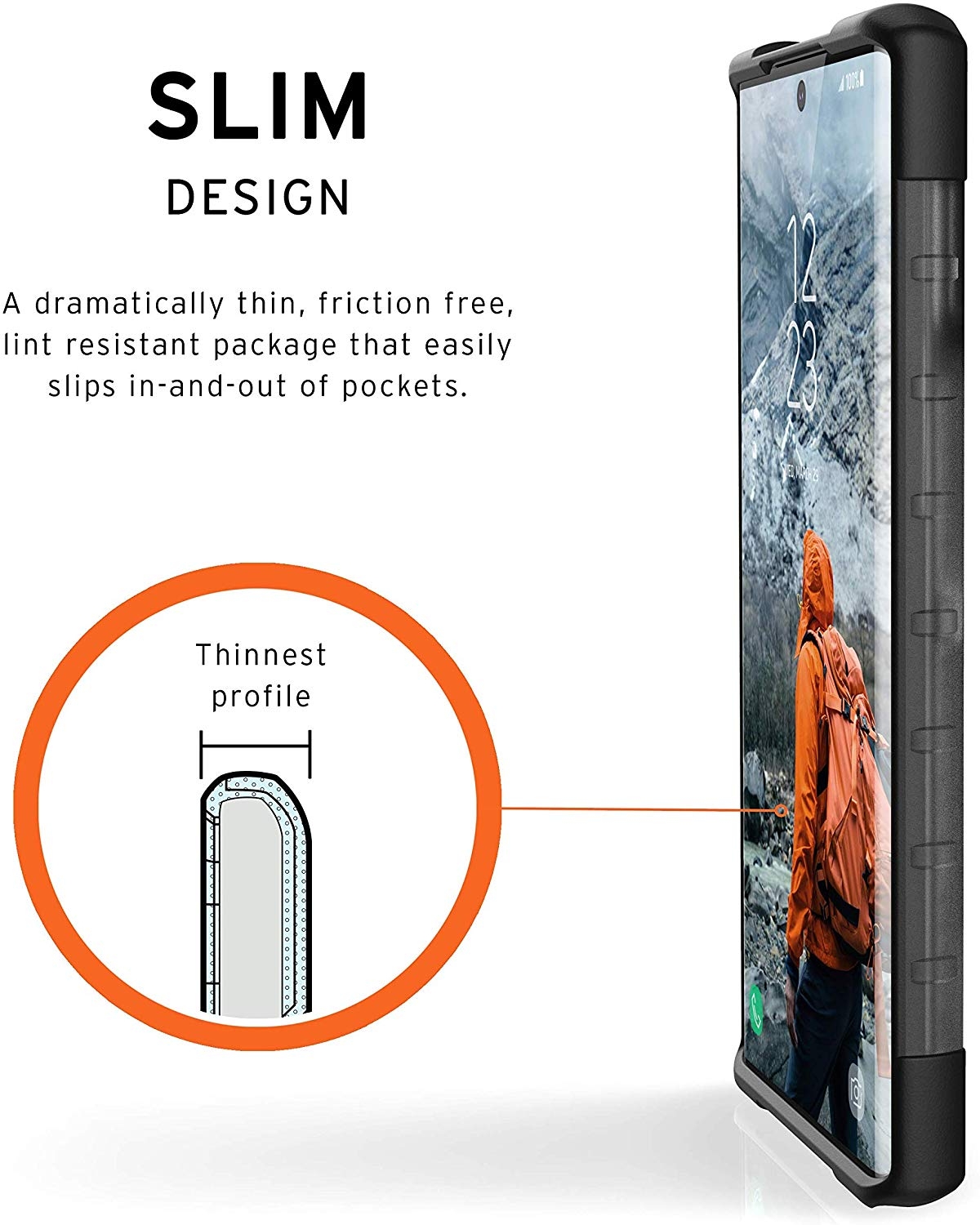 Με τις θήκες UAG ο όγκος της συσκευής αυξάνεται ελάχιστα χάρη στο πολύ λεπτό προφίλ της θήκης. Πληρεί τις στρατιωτικές προδιαγραφές MIL STD 810G-516.6 έχοντας περάσει μια σειρά απαιτητικών δοκιμασιών σχετικά με την αντοχή της θήκης μεταξύ των οποίων και πτώση της συσκευής (μαζί με την θήκη) από ύψος 1.2 μέτρα από κάθε πιθανή γωνία.