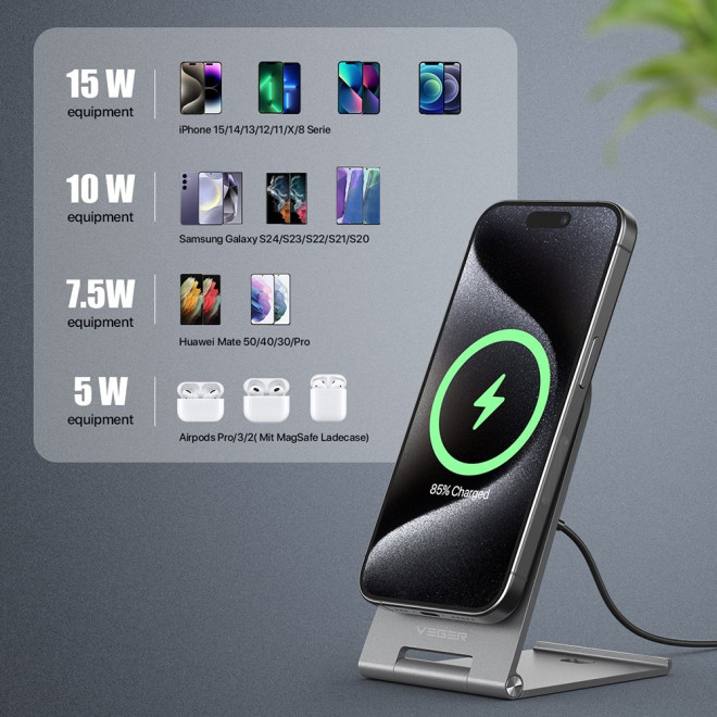 Ο ασύρματος μαγνητικός φορτιστής αλουμινίου Q7 της Veger, διαθέτει ισχύ 15W, πιστοποίηση QI2 και αναδιπλούμενο σχεδιασμό. Διαθέτει ένα κομψό και λεπτό περίβλημα από αλουμίνιο υψηλής ποιότητας, ώστε να αναβαθμίσει τον χώρο σας αλλά και να σας εξασφαλίζει απαγωγή θερμότητας για ασφαλή φόρτιση.