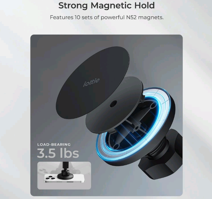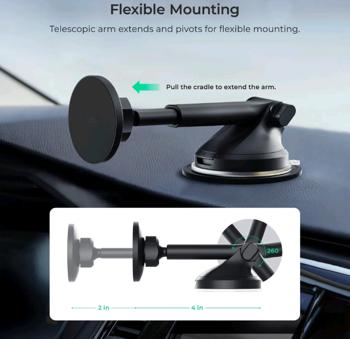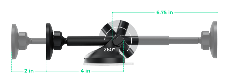 Σας προσφέρει ισχυρό μαγνητικό κράτημα για μεγαλύτερη ασφάλεια χάρη στο σύστημα μαγνητικής τοποθέτησης με 10 σετ μαγνητών N52. Η συσκευή σας θα παραμένει απόλυτα σταθερή, ακόμα και σε ανώμαλους δρόμους. Ο ρυθμιζόμενος τηλεσκοπικός βραχίονας έχει τη δυνατότητα επέκτασης από 10 έως 17 cm και περιστροφής σε γωνία 260°!
