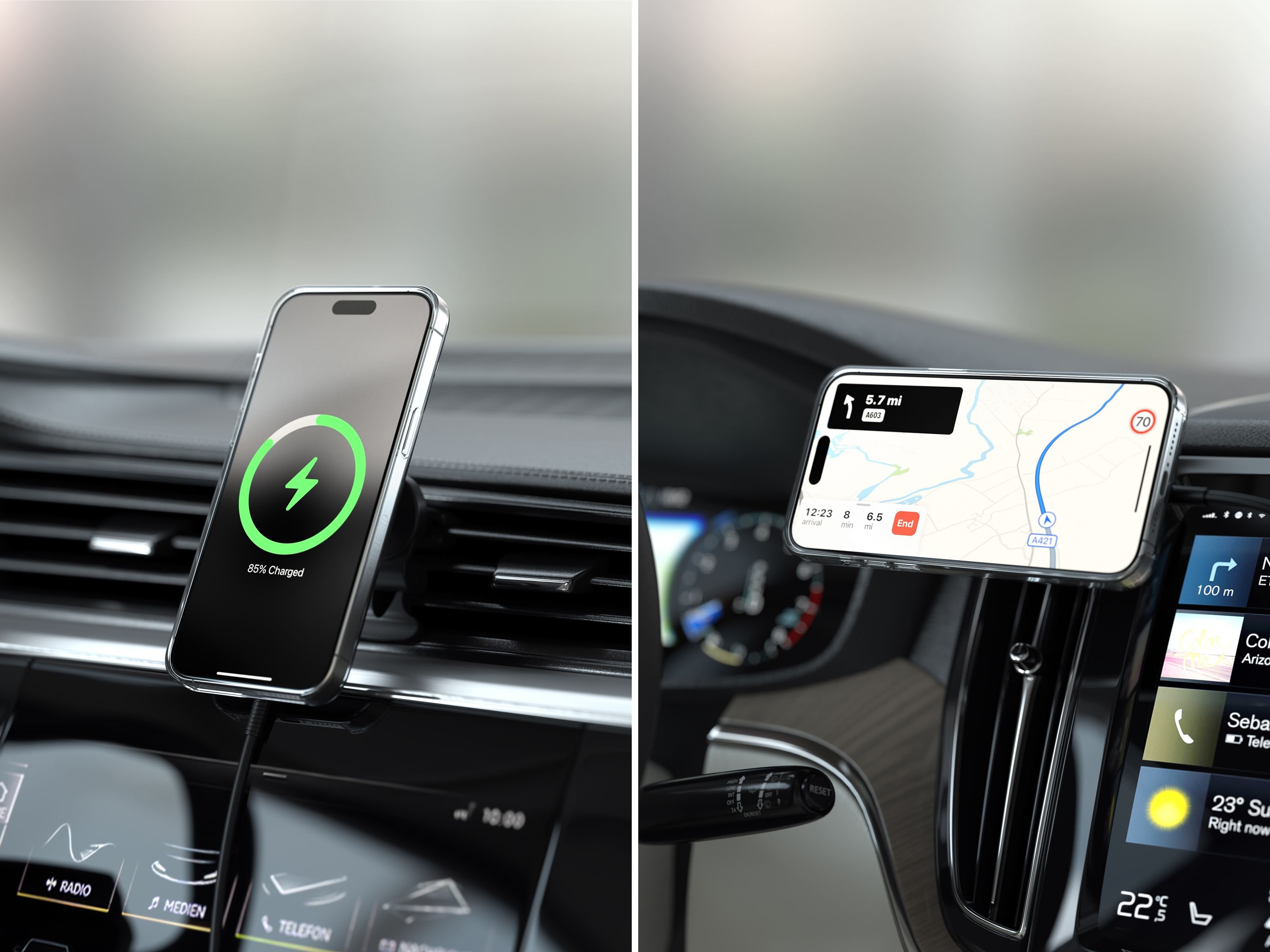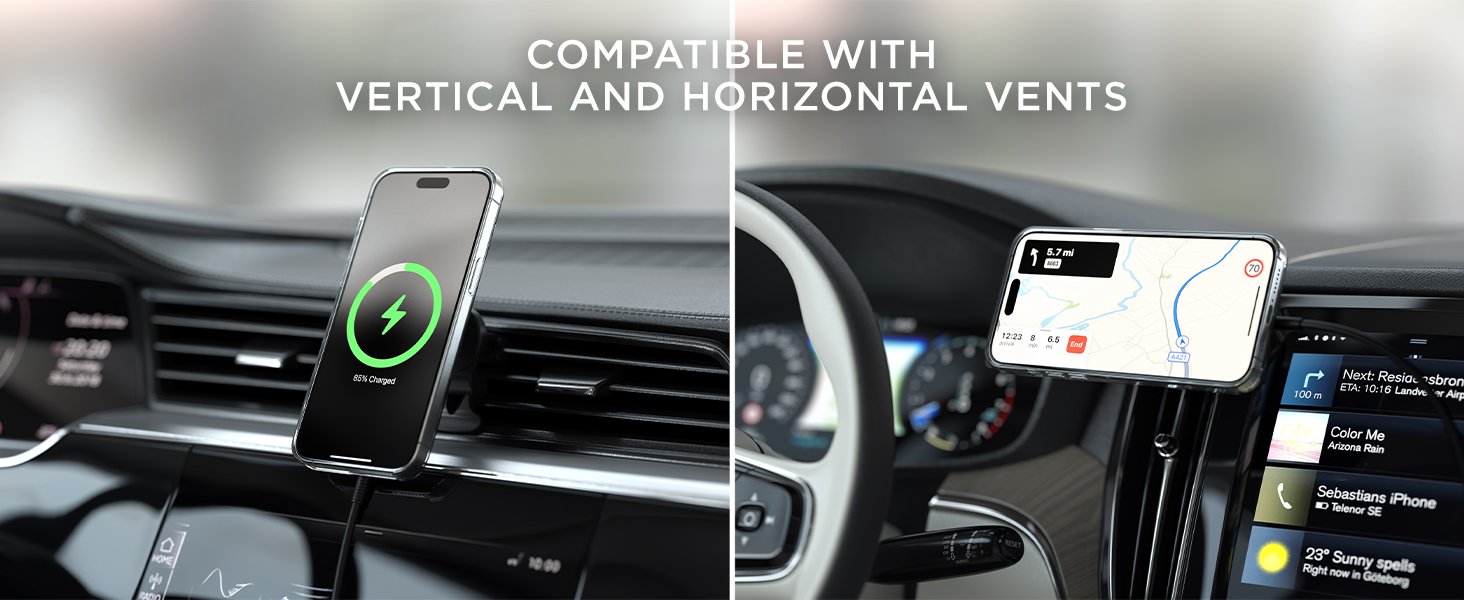 Η βάση κινητών αυτοκινήτου Qi2 Wireless Car Charger της Satechi είναι ειδικά σχεδιασμένη για τους αεραγωγούς αυτοκινήτου σας και σας προσφέρει γρήγορη ασύρματη μαγνητική φόρτιση MagSafe. Αποτελεί την ιδανική λύση για την φόρτιση της συσκευής σας εν κινήσει!