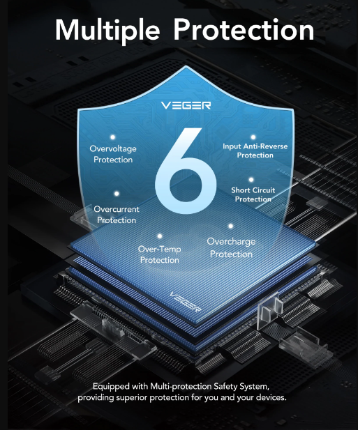 Διαθέτει αντιολισθητική και αντιχαρακτική σχεδίαση στην επιφάνεια του, ικανή να το διατηρήσει σαν καινούργιο για μεγάλο χρονικό διάστημα. Τοποθετείται εύκολα σε σακίδια, τσάντες ή τσάντες laptop, χάρη στη λεπτή του σχεδίαση πάχους 16mm. Το πανίσχυρο φορητό power bank της Veger είναι ευρέως συμβατό με mainstream συσκευές, όπως iPhone, iPad Pro, Samsung, Pixel κ.λπ. Είναι εξοπλισμένη με σύστημα ασφαλείας πολλαπλής προστασίας, που παρέχει ανώτερη προστασία για εσάς και τις συσκευές σας.