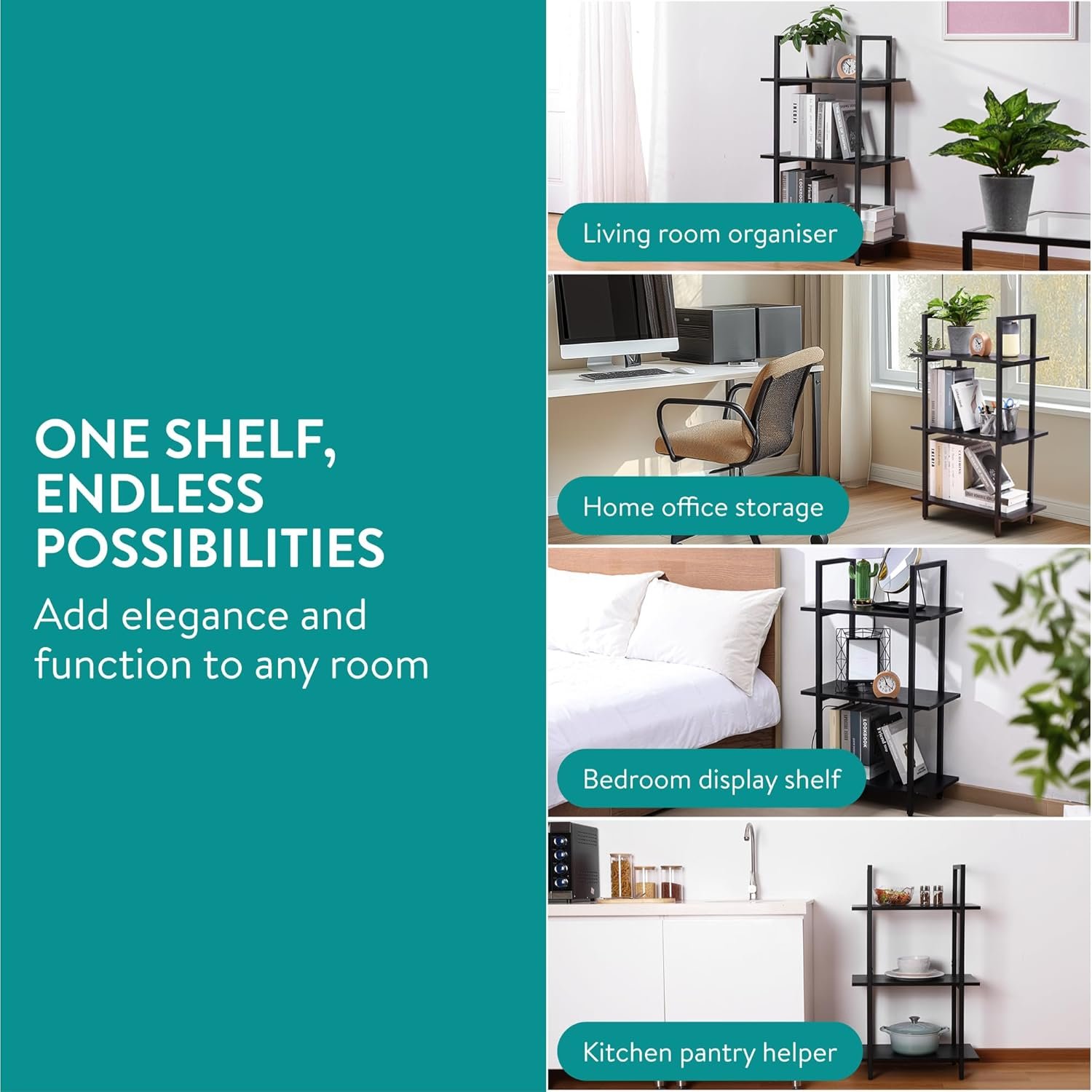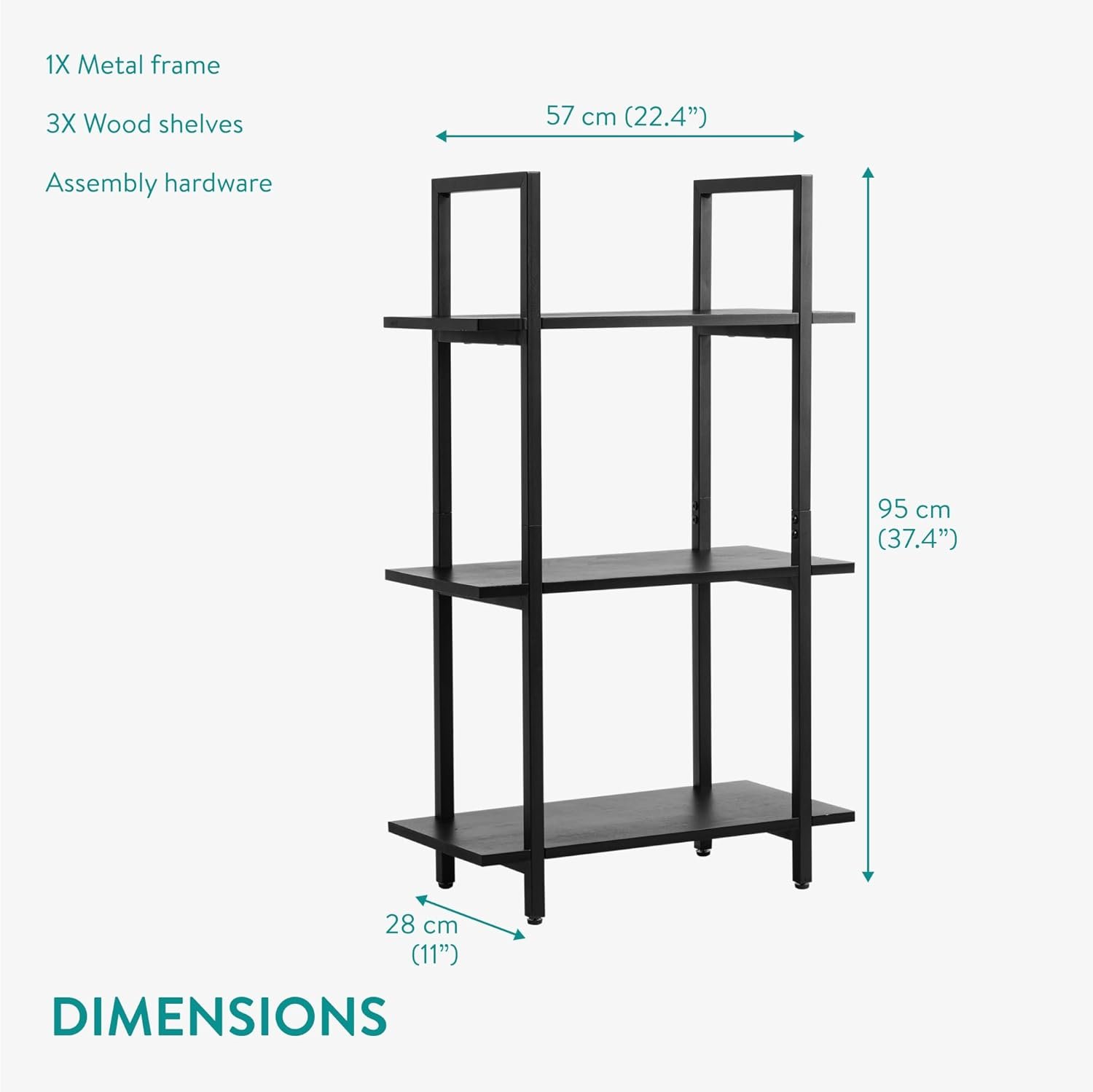 Με διαστάσεις 57 x 95 x 28 cm, αυτή η βιβλιοθήκη είναι ιδανική για μικρούς αλλά και μεγάλους χώρους. Τα τρία της ράφια σας επιτρέπουν να τοποθετήσετε τα αγαπημένα σας βιβλία, διακοσμητικά, φυτά και πολλά ακόμα αξεσουάρ. Το στιβαρό μεταλλικό πλαίσιο σε συνδυασμό με τα ανθεκτικά ξύλινα ράφια, εξασφαλίζουν τη σταθερότητα και την ανθεκτικότητά της.